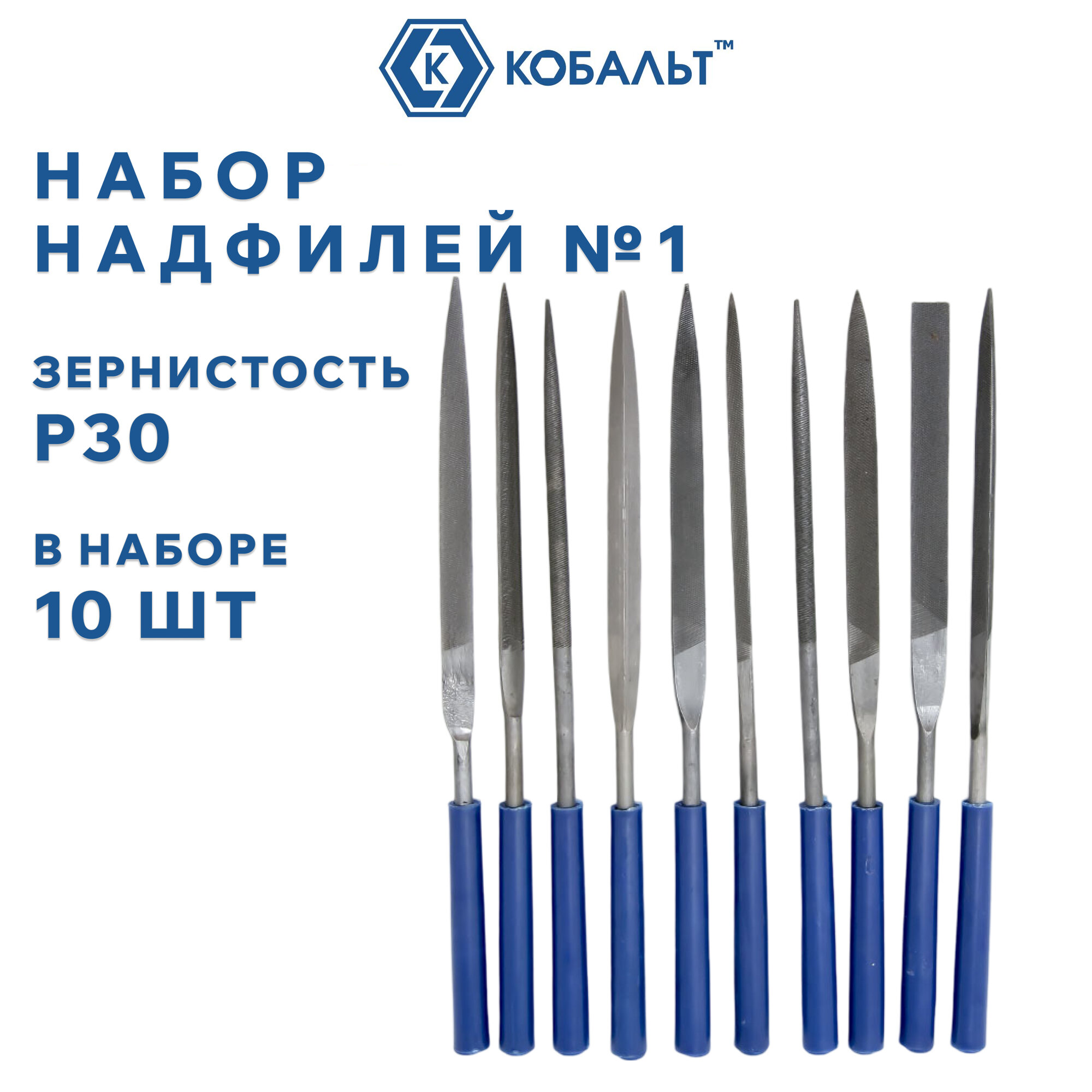 Набор надфилей КОБАЛЬТ № 1, 140х 50х3 мм, обрезиненные рукоятки (10 шт.) чехол. интересное: