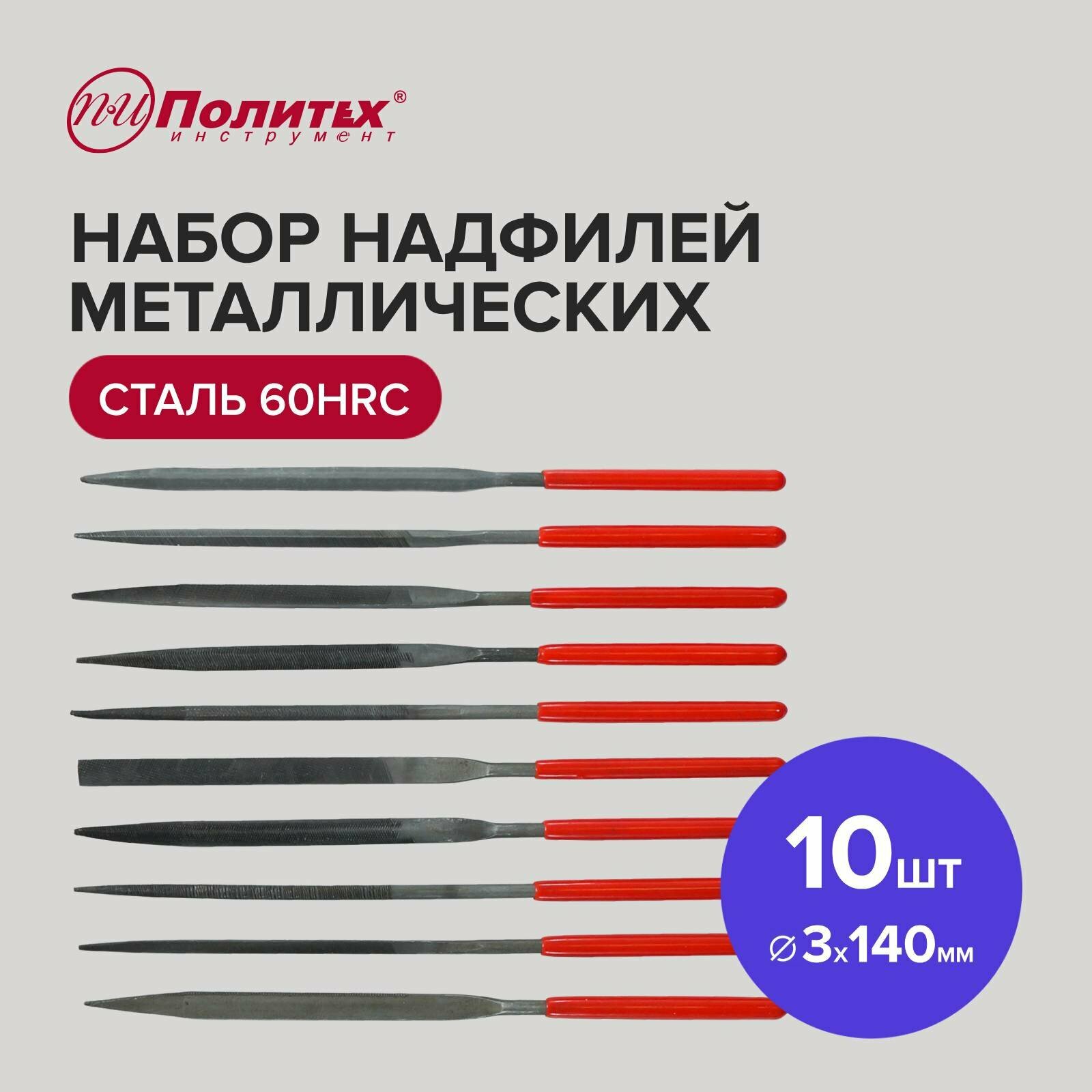Купить Набор надфилей металлических 140 мм х 3 мм, 10 штук Политех Инструмент