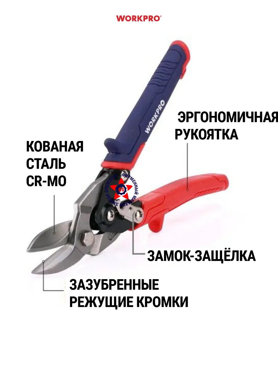 Ножницы по металлу 250 мм WP214021, WORKPRO, цвет синий/красный интересное: