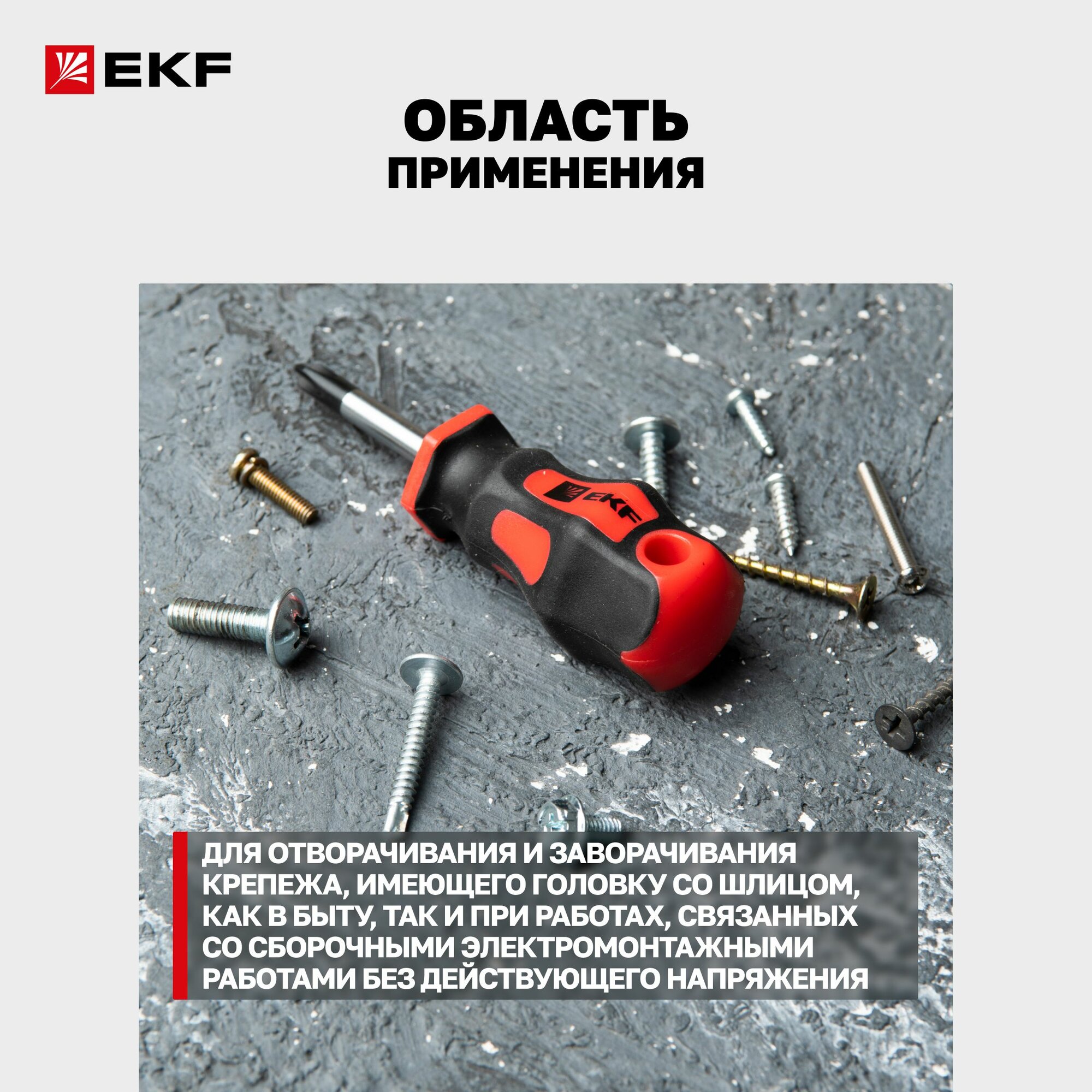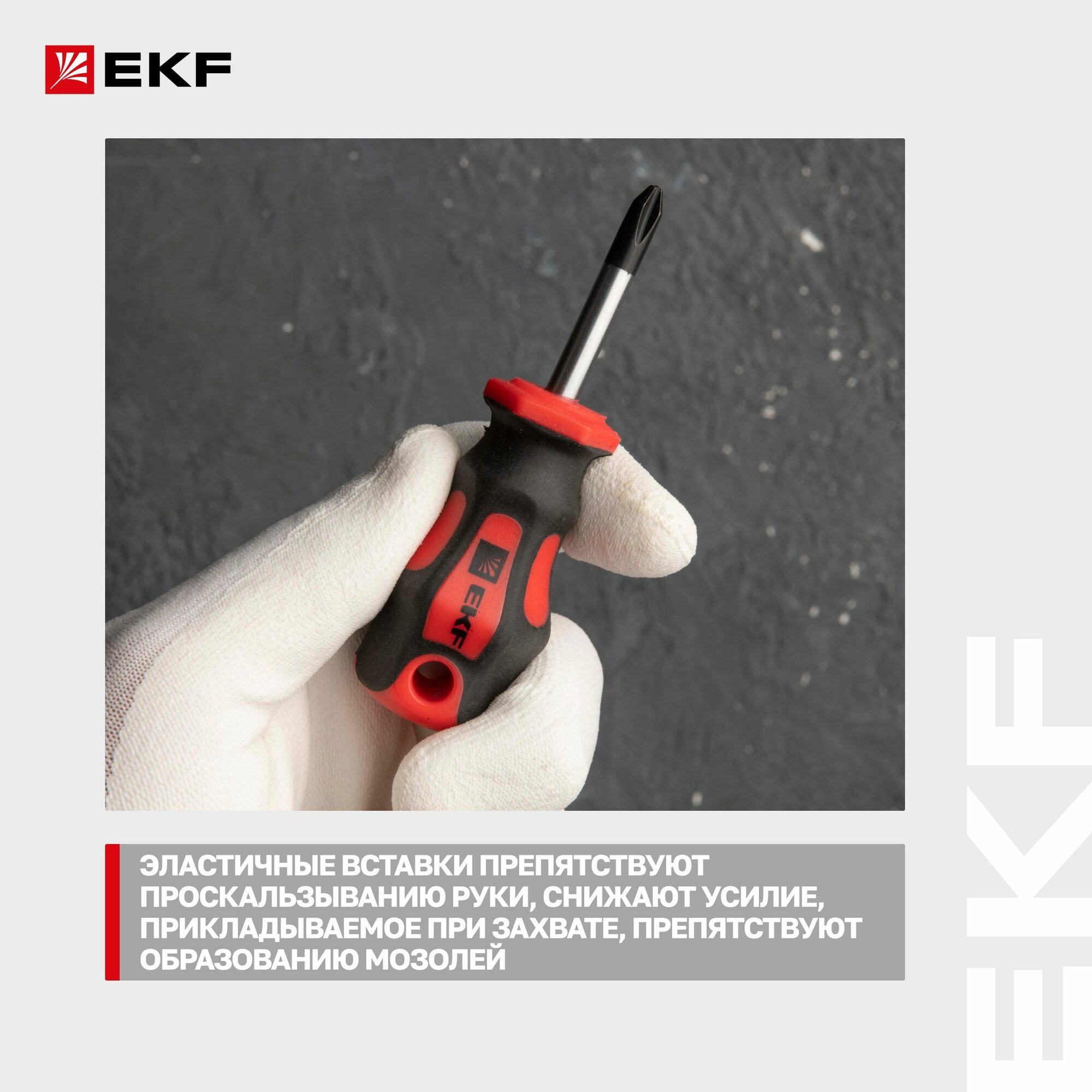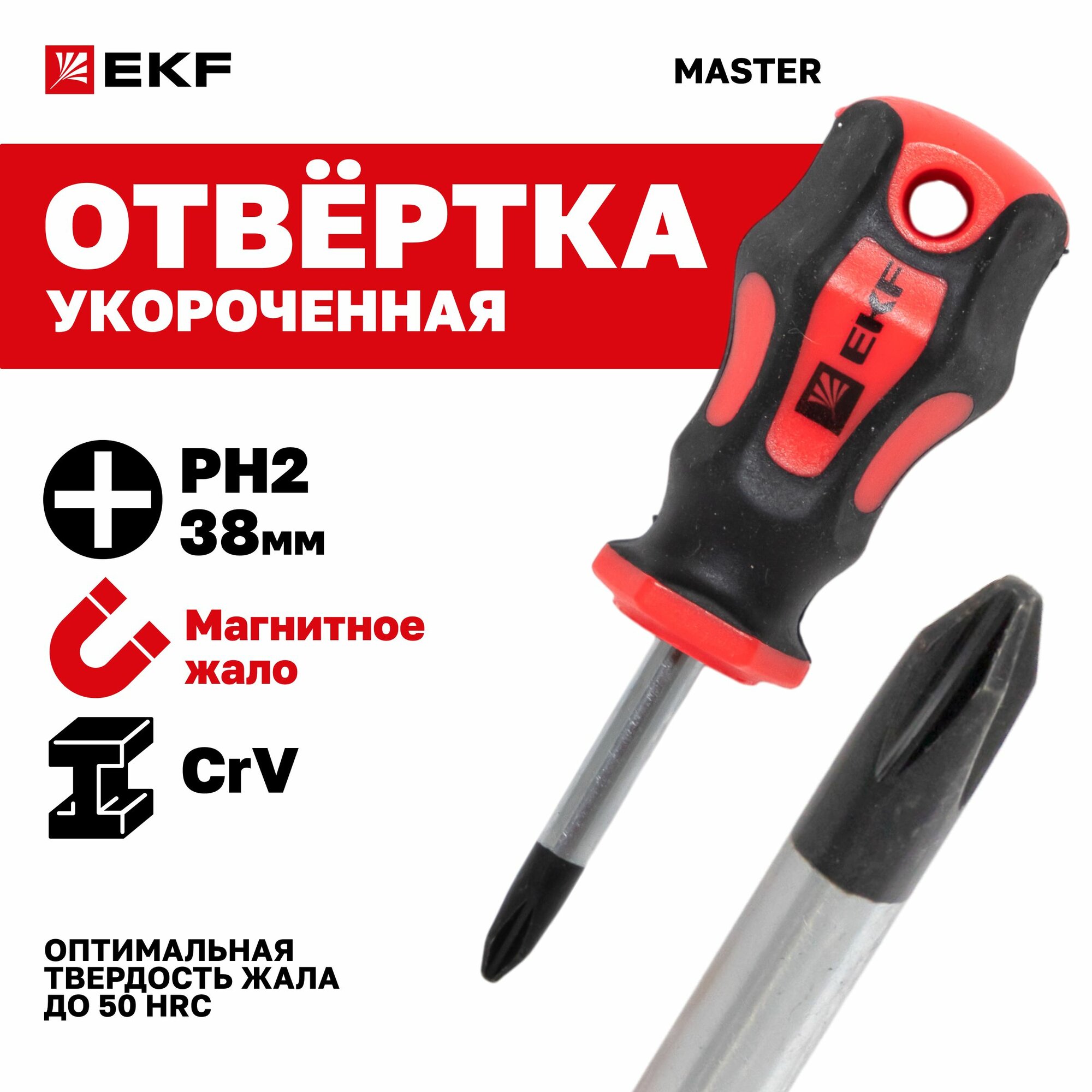 Отвертка крестовая (плюс, крестообразная) короткая (бочонок) магнитная EKF Master PH2x38 мм интересное: