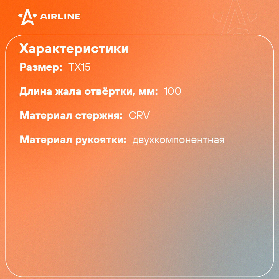 Отвертка TORX TX15x100мм, магнитный наконечник, пласт. подвес ATBX007 AIRLINE интересное: