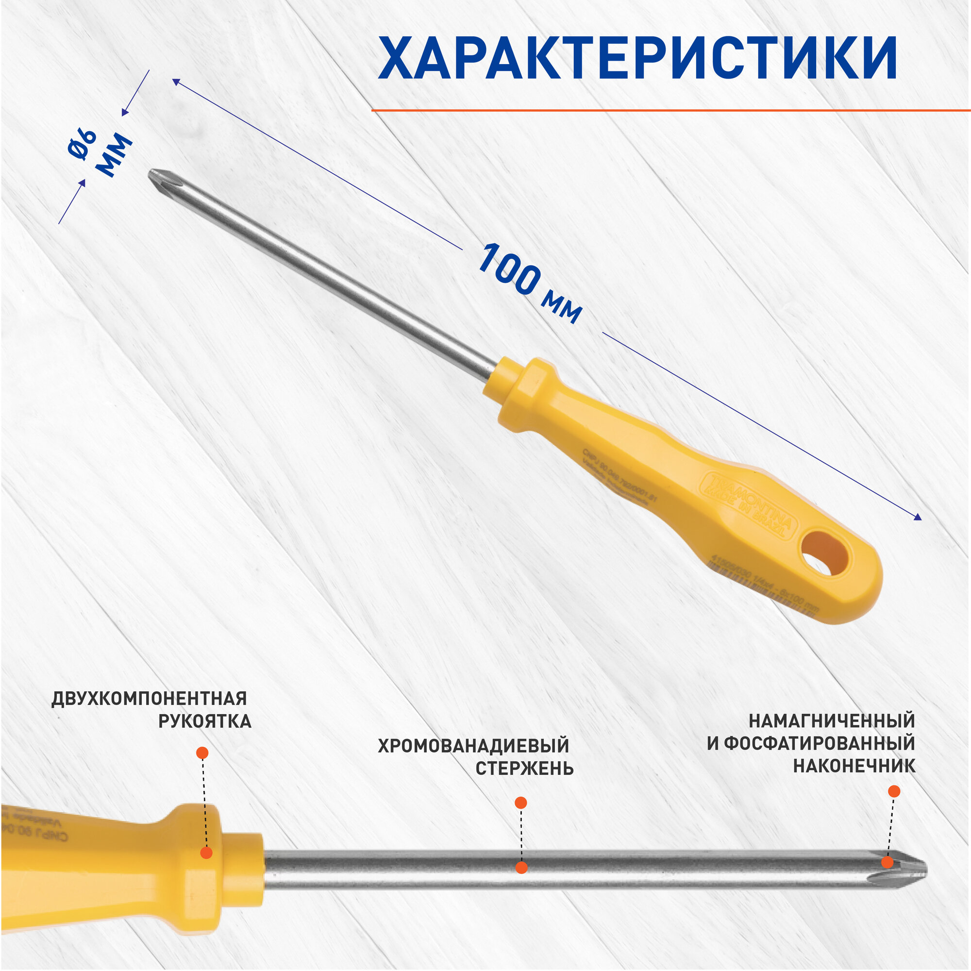 Отвертка крестовая Tramontina 41505030 универсальная для точных работ PH6, 6х100 мм, ванадиевая сталь интересное: