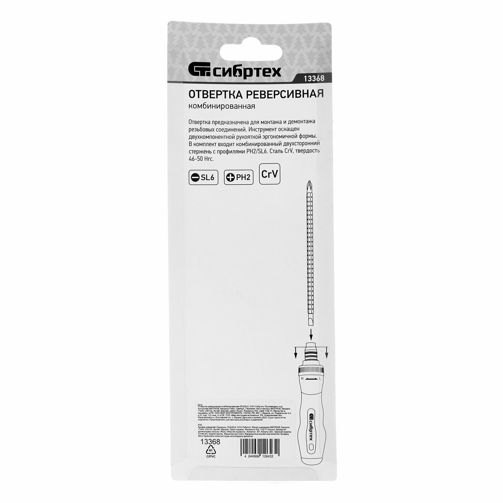 Купить Отвертка реверсивная комбинированная PH2/SL6 Сибртех CrV 13368