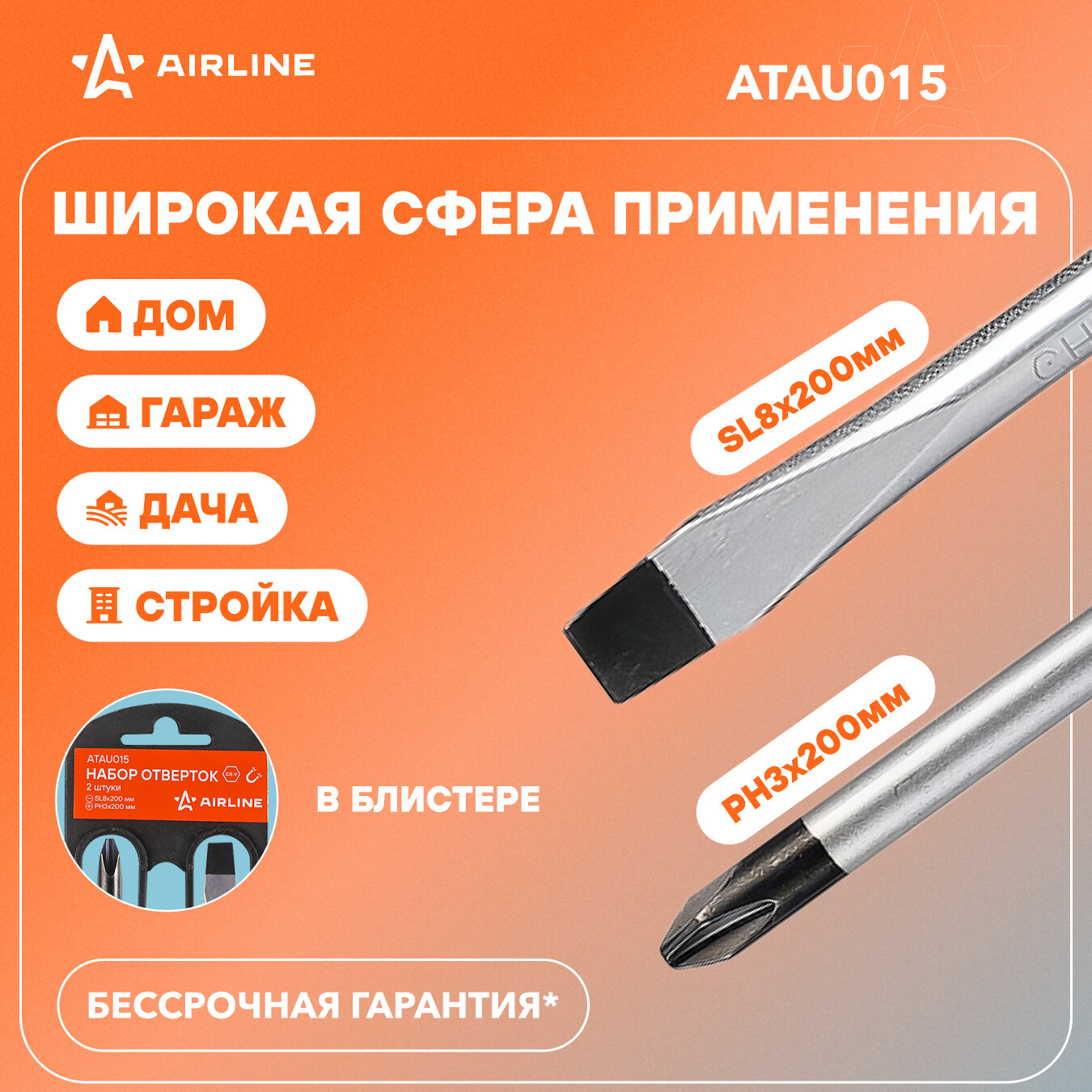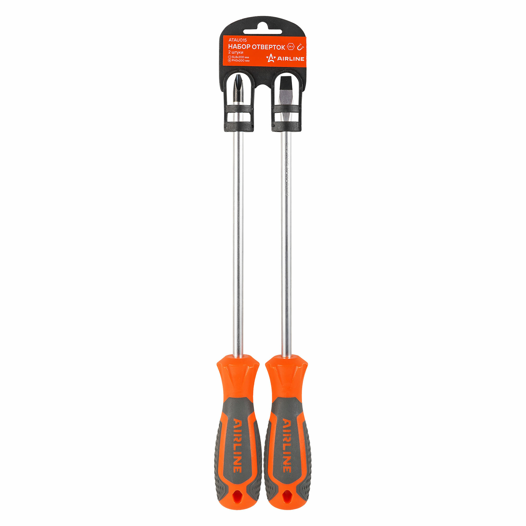 Набор отвёрток 2 пр. (SL8x200mm, PH3x200mm), пласт. подвес ATAU015 AIRLINE интересное: