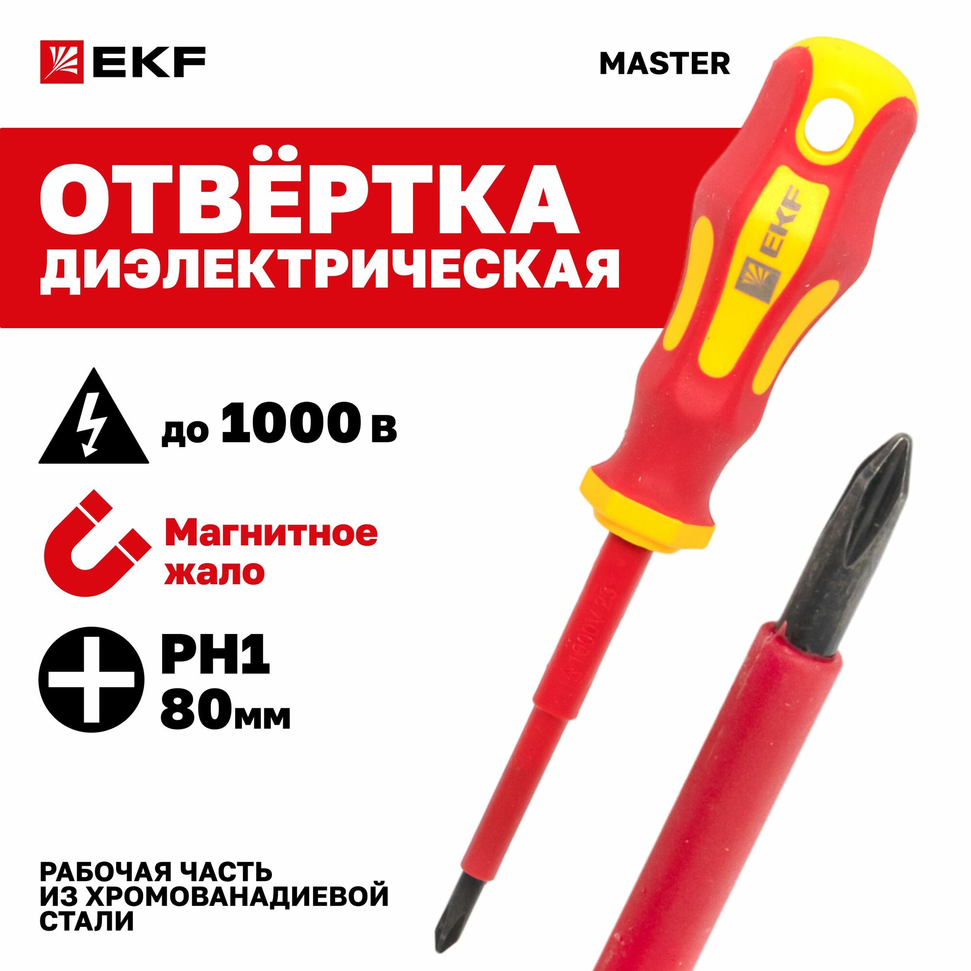 Отвертка диэлектрическая Master PH1x80 мм 1000В EKF, двухкомпонентная рукоятка интересное: