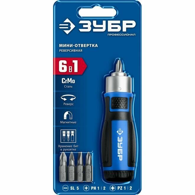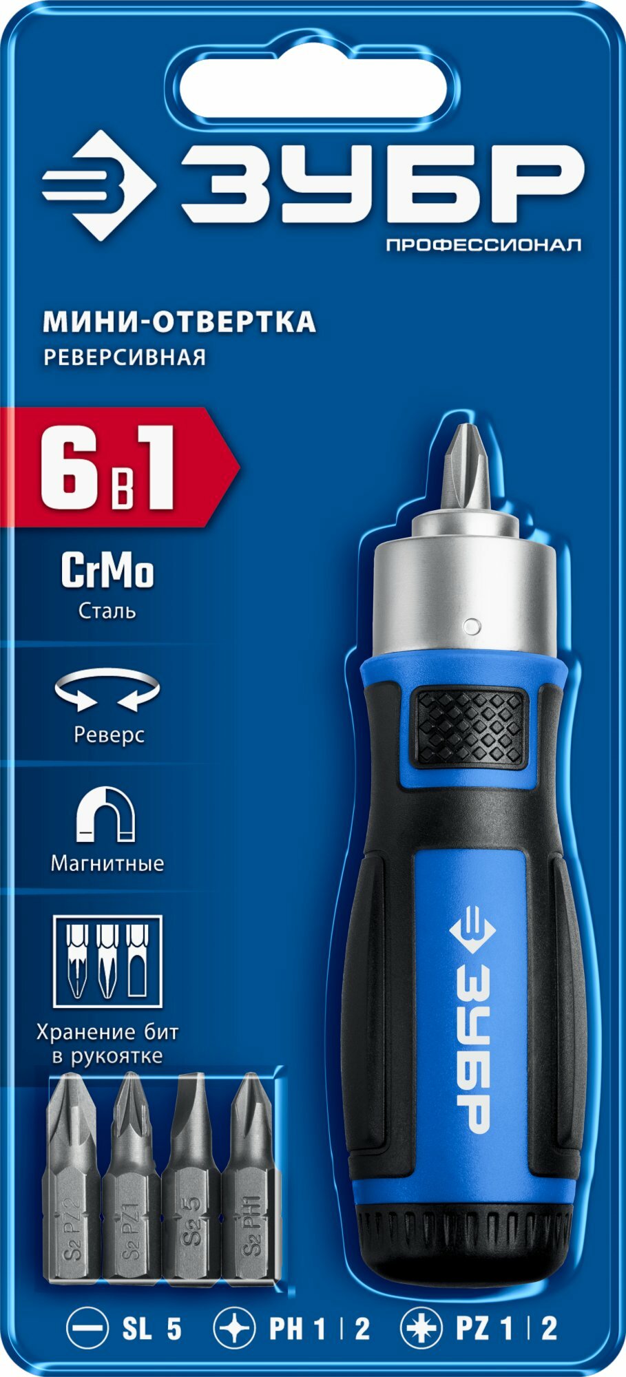 Купить Реверсивная отвертка с насадками, ЗУБР 6 предм.