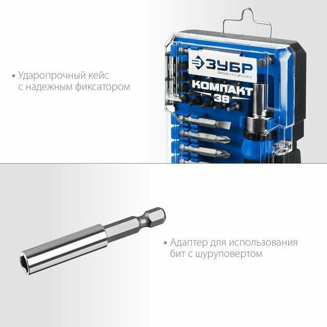 Отвертка реверсивная в наборе Компакт-38 ЗУБР 38 шт, Профессионал интересное: