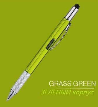 Купить Мультитул 5 в 1. Двухсторонняя отвертка с шариковой ручкой, уровнем, линейкой, и стилусом. Зеленый
