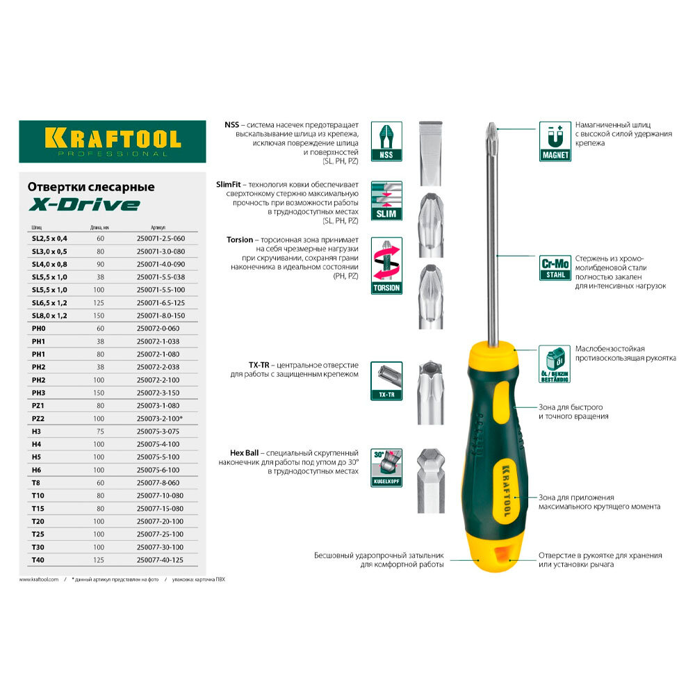 Отвертка прямой наконечник Kraftool 250083-4.0-100