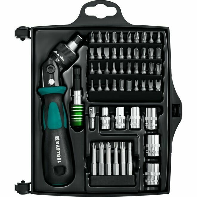Отвертка реверсивно-рычажная в наборе с насадками X-Force-55 KRAFTOOL 55 шт. интересное: