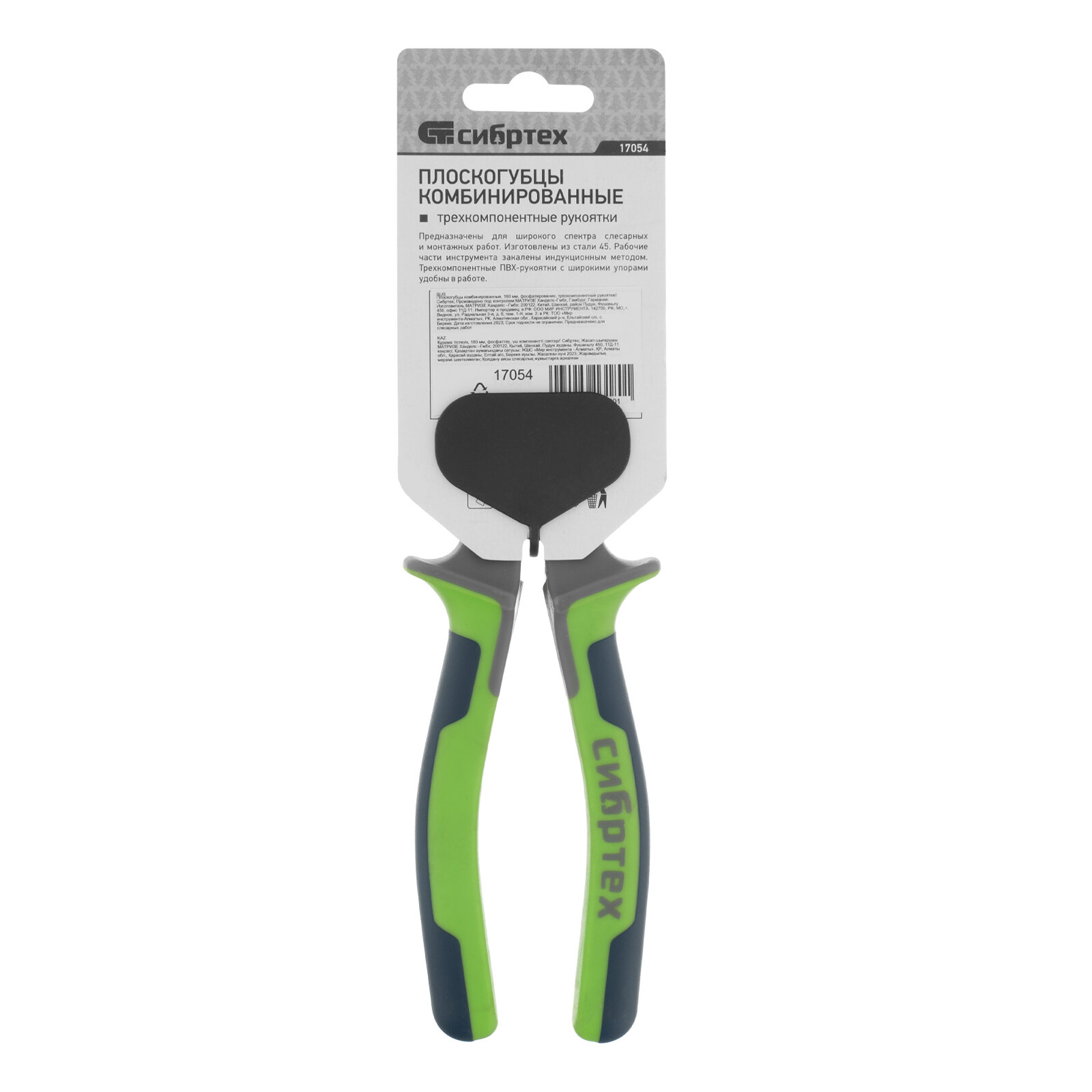 Купить Плоскогубцы комбинированные Сибртех 180 мм, фосфатирование, трехкомпонентные рукоятки 17054