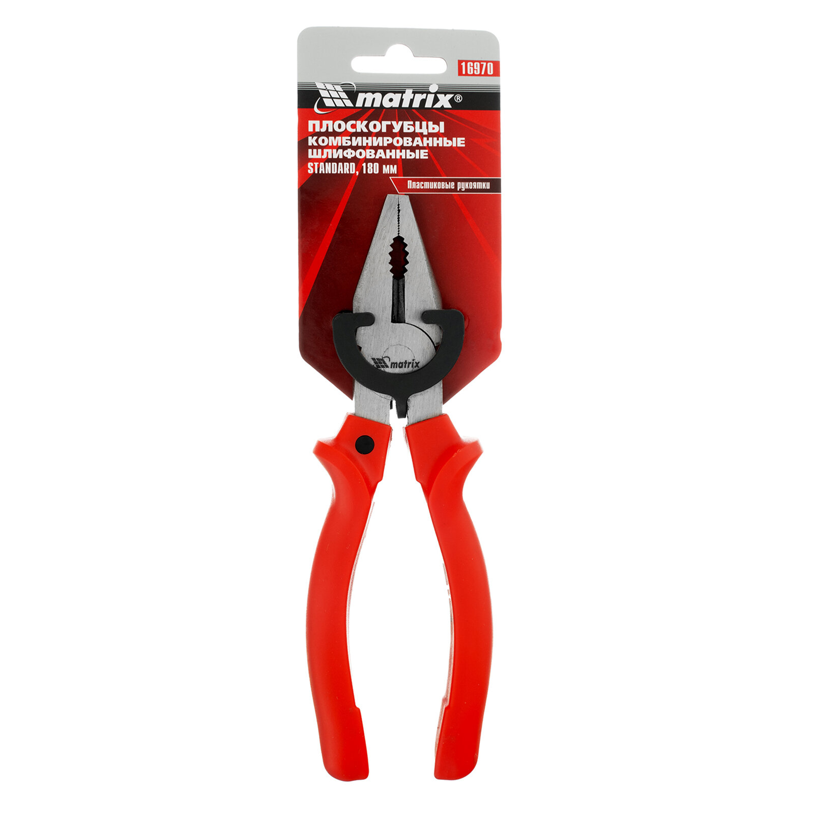 Купить Плоскогубцы Matrix Standard, 180 мм, комбинированные шлифованные, пластмассовые рукоятки 16970