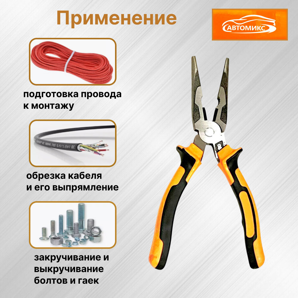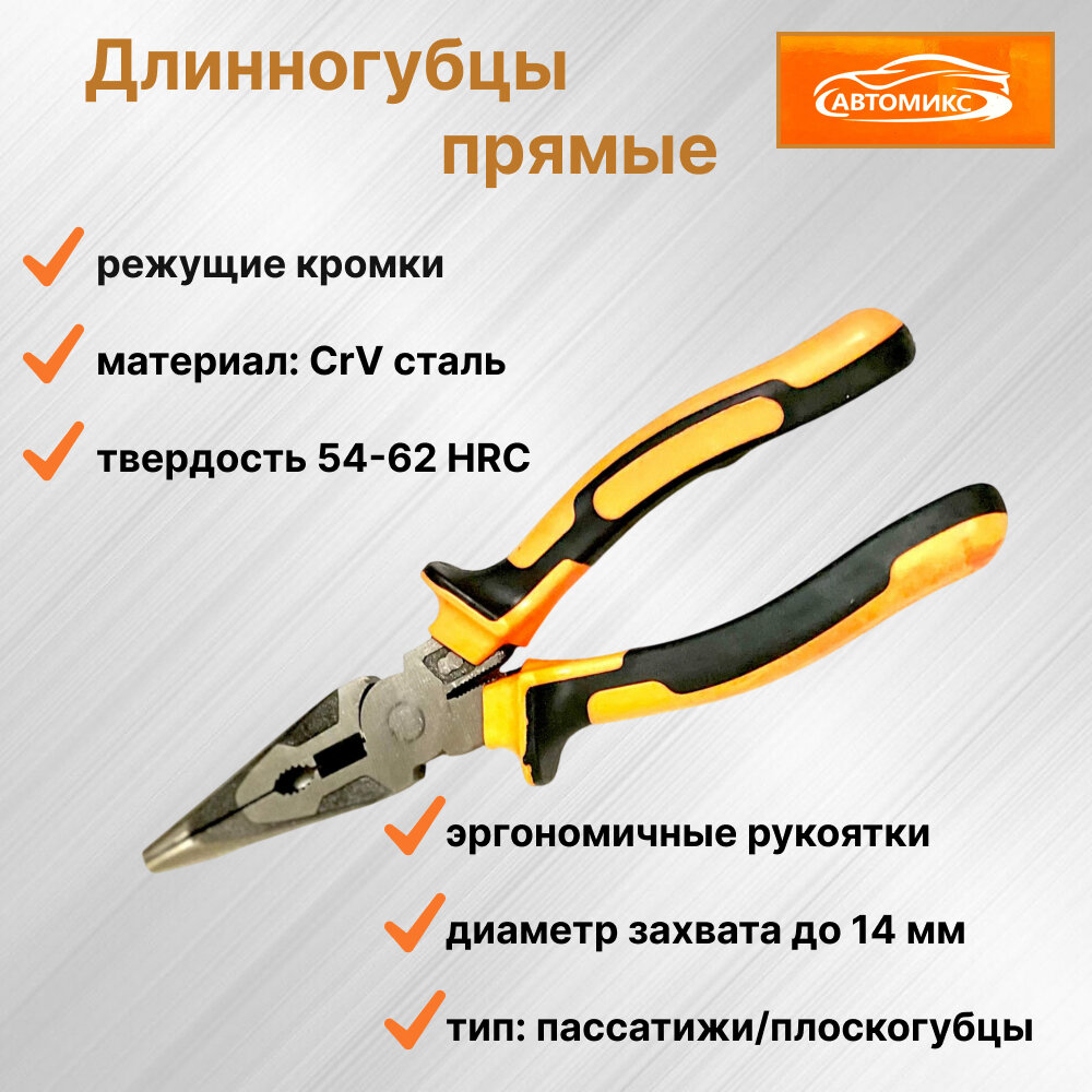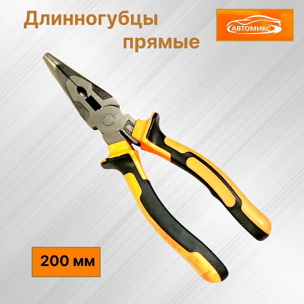 Купить Длинногубцы Автомикс Pliers, 200 мм, прямые никелированные, двухкомпонентные рукоятки
