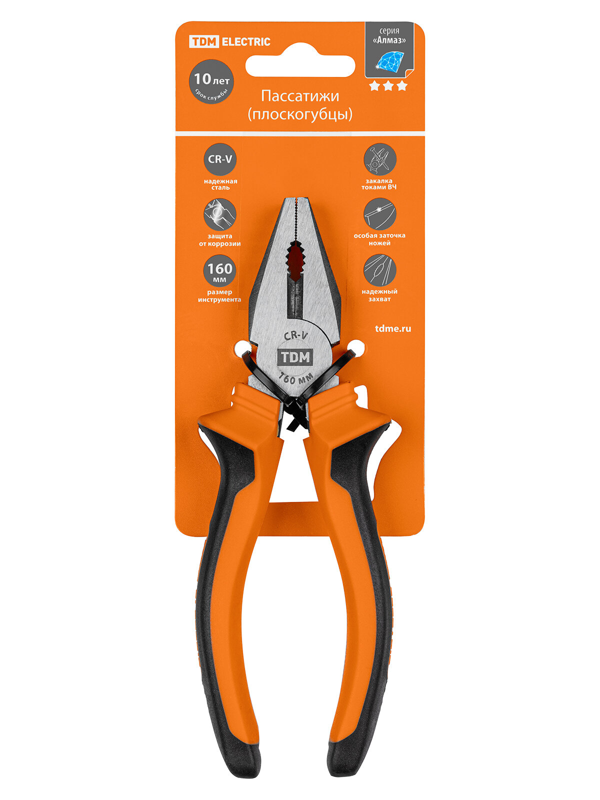 Пассатижи (плоскогубцы), с двухкомпонентными рукоятками, CR-V сталь 160 мм, серия "Алмаз" TDM интересное: