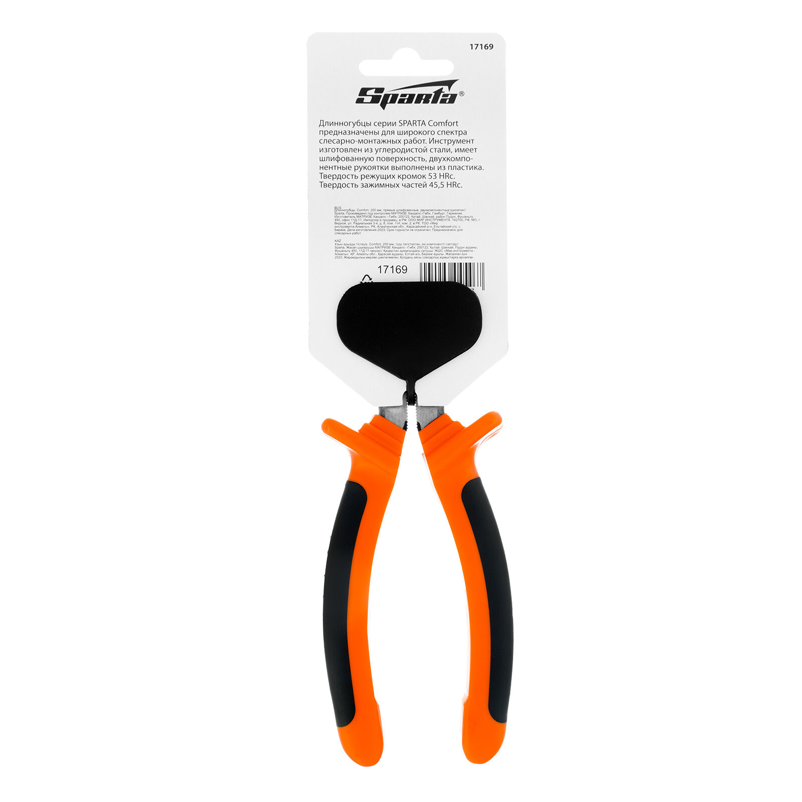 Купить Длинногубцы, Comfort, 200 мм, прямые шлифованные, двухкомпонентные рукоятки Sparta