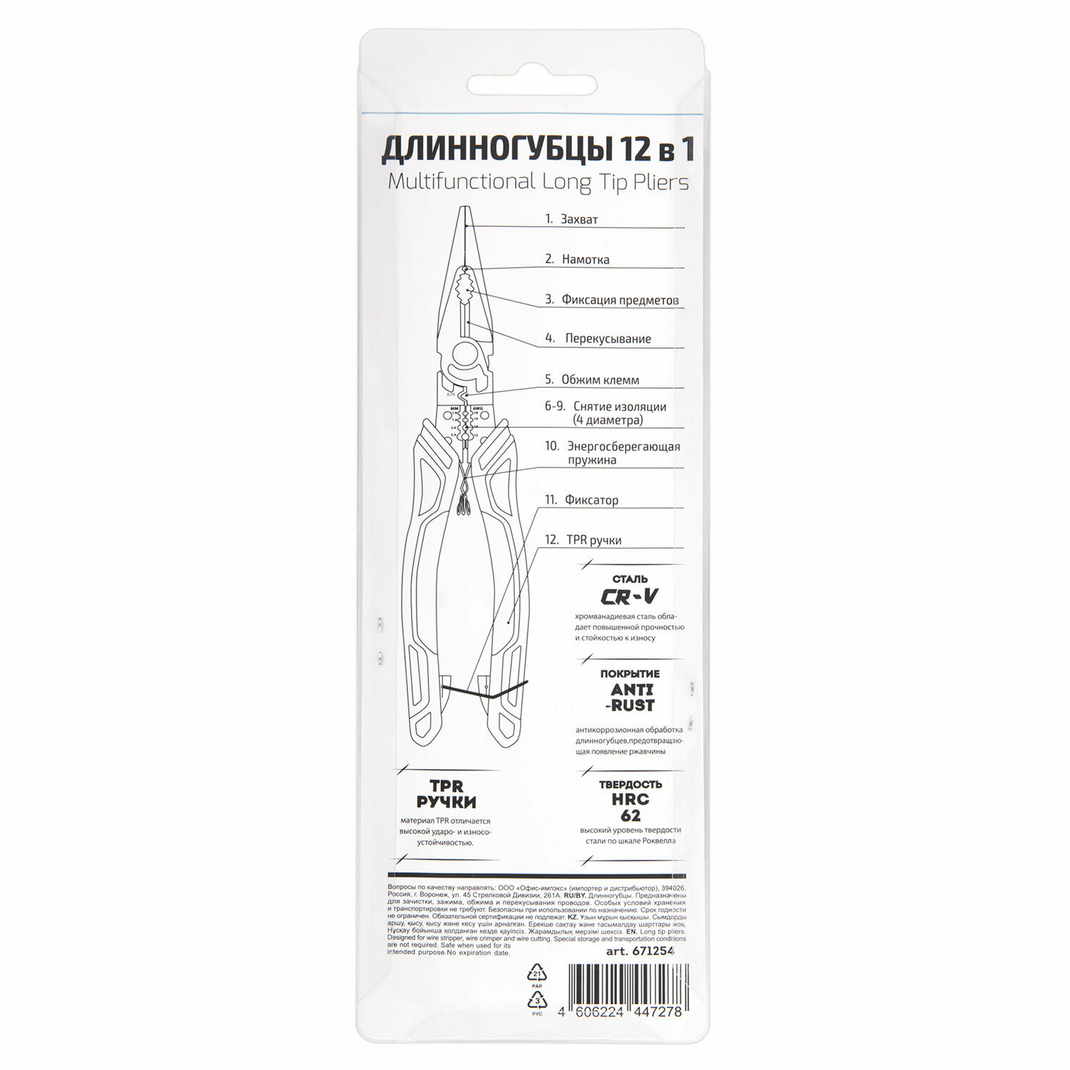 Длинногубцы многофункциональные 12 в 1, 220 мм, CR-V – хромванадиевая сталь, грандмастер, LNP-220, 671254 интересное:
