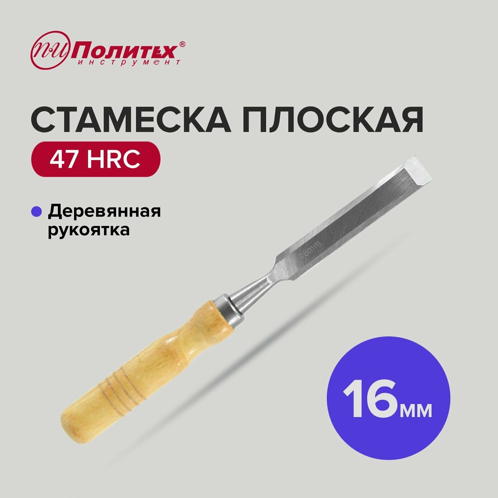 Купить Стамеска по дереву плоская с деревянной рукояткой 16 мм, Политех Инструмент