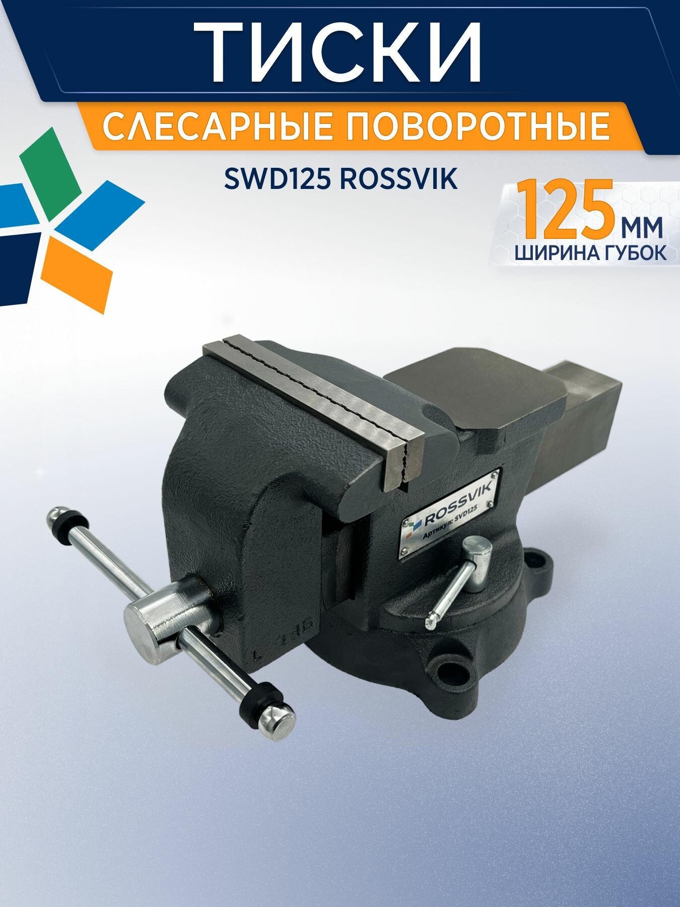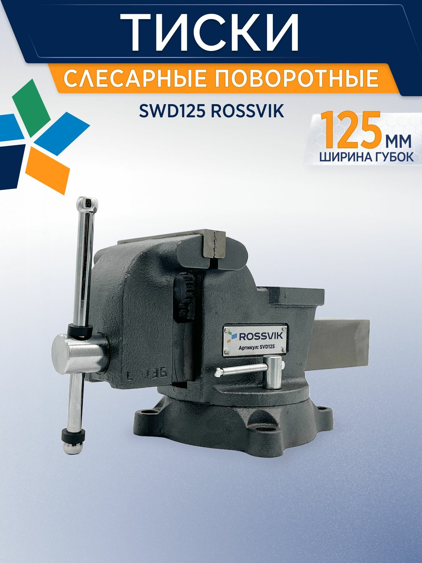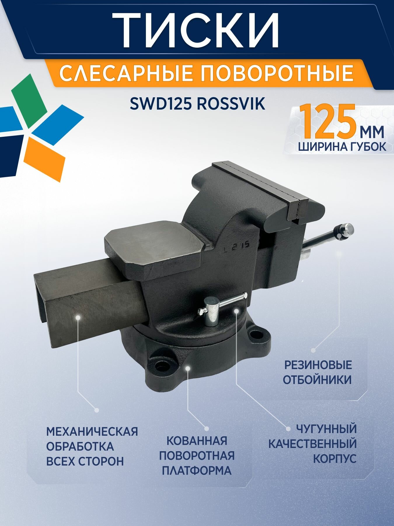 ROSSVIK Тиски слесарные поворотные с наковальней 125мм, настольные чугунные с поворотным механизмом интересное: