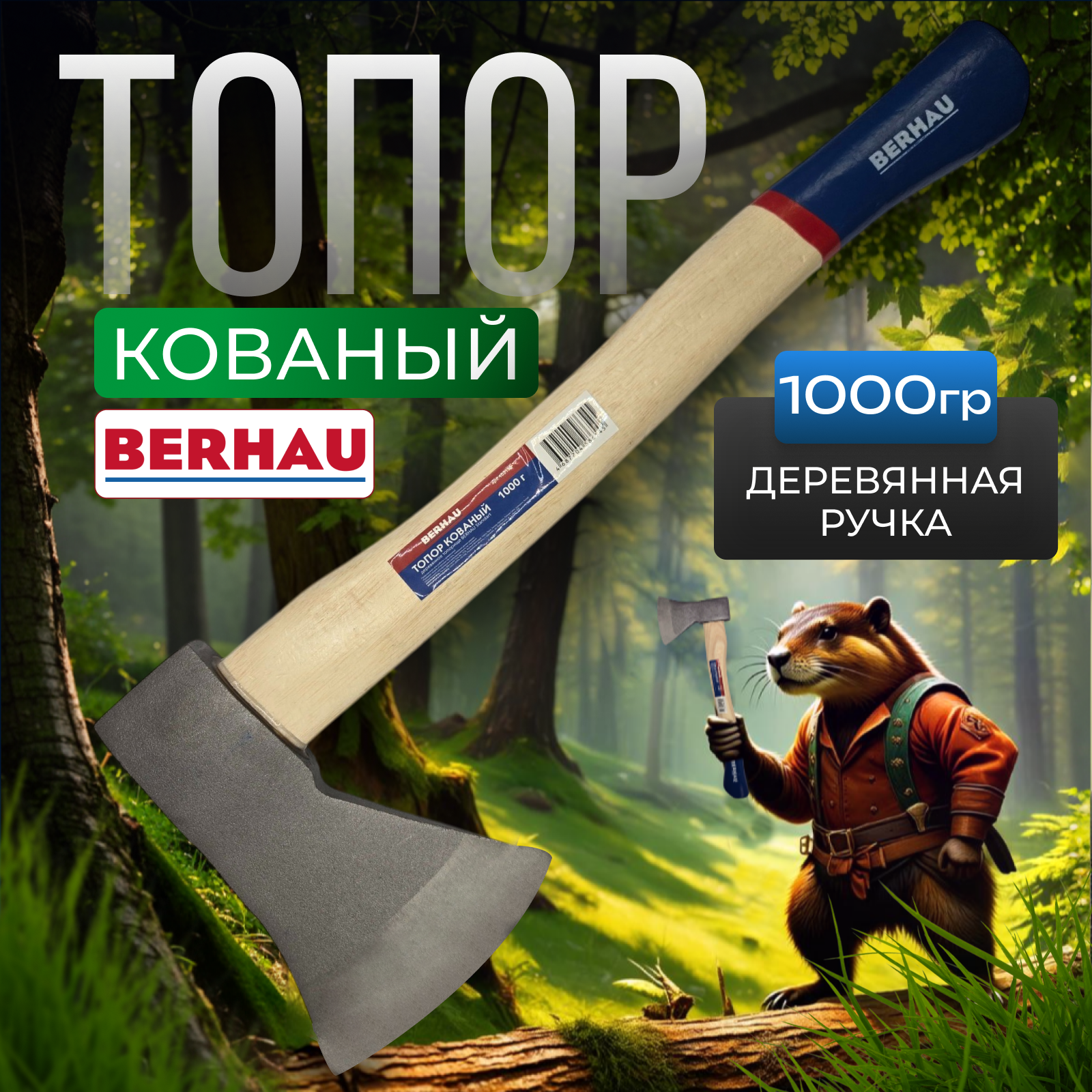 Топор кованый 1000гр деревянное топорище BERHAU Standart 102130 интересное: