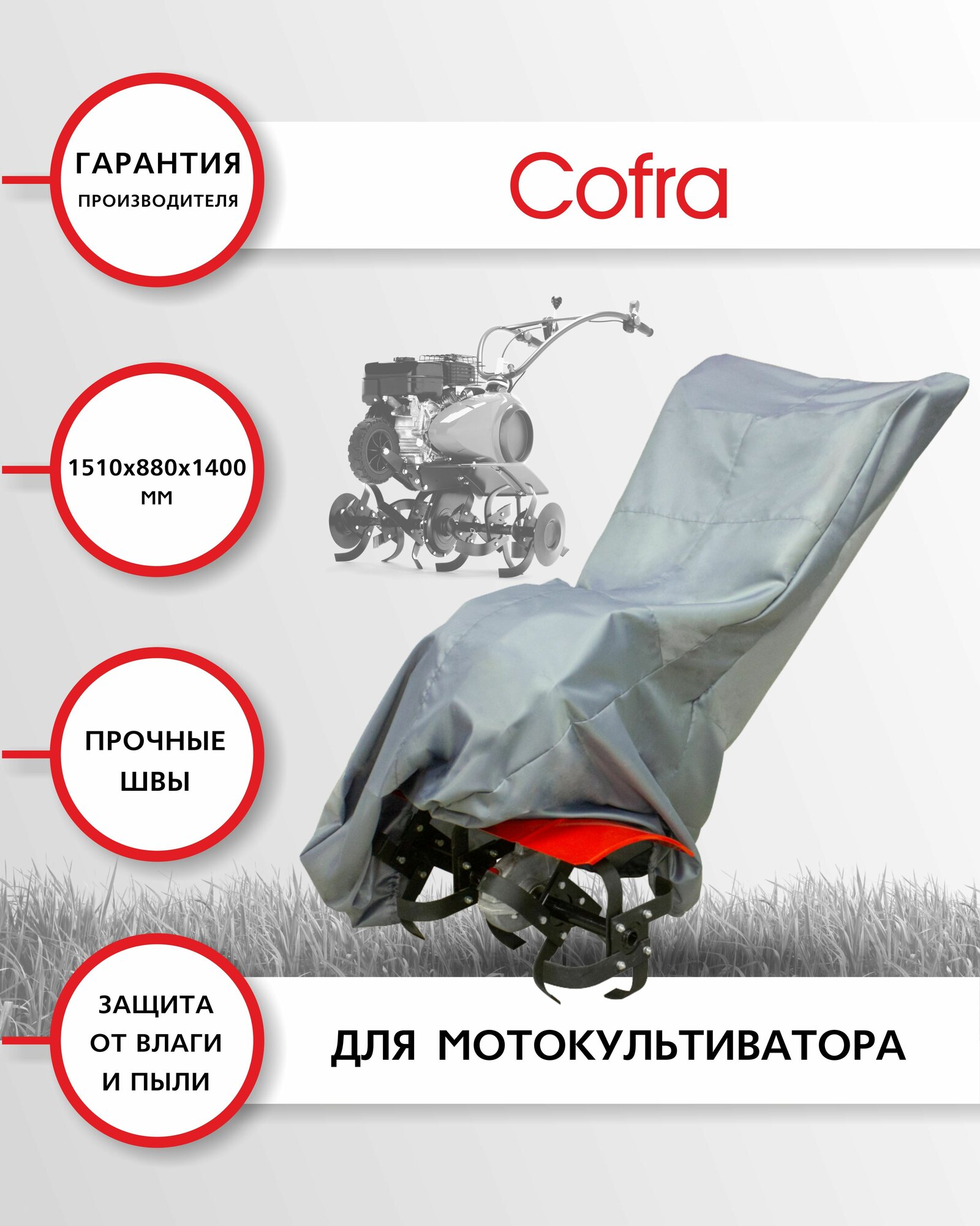 Сумка-чехол для мотокультиватора Cofra, синтетическая, размер 1510x880x1400 мм, серый цвет интересное: