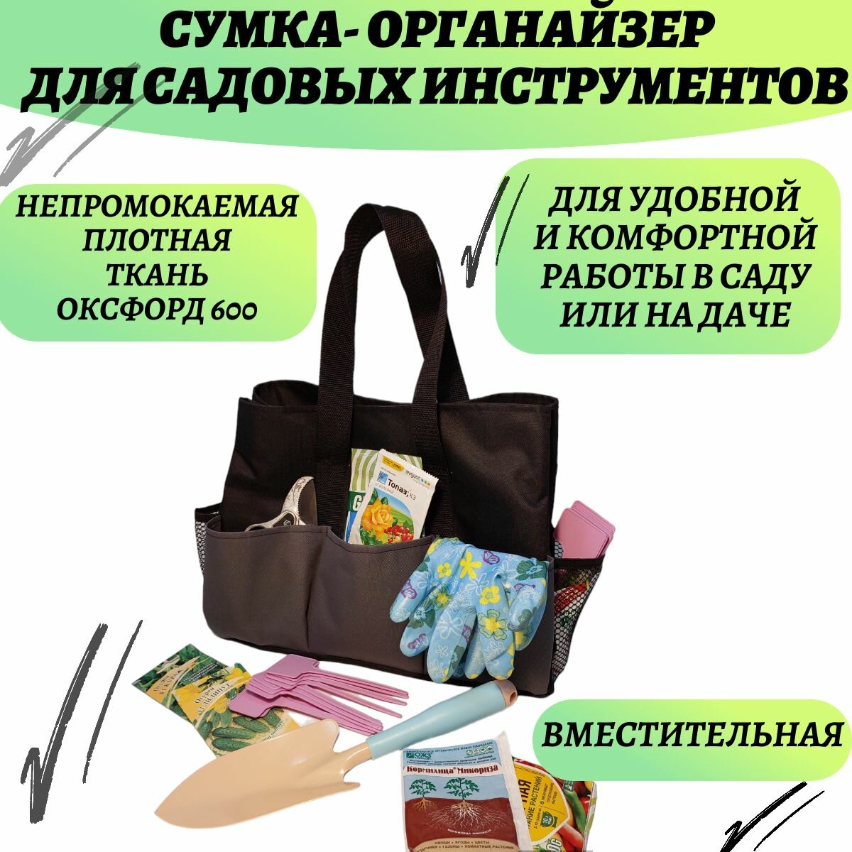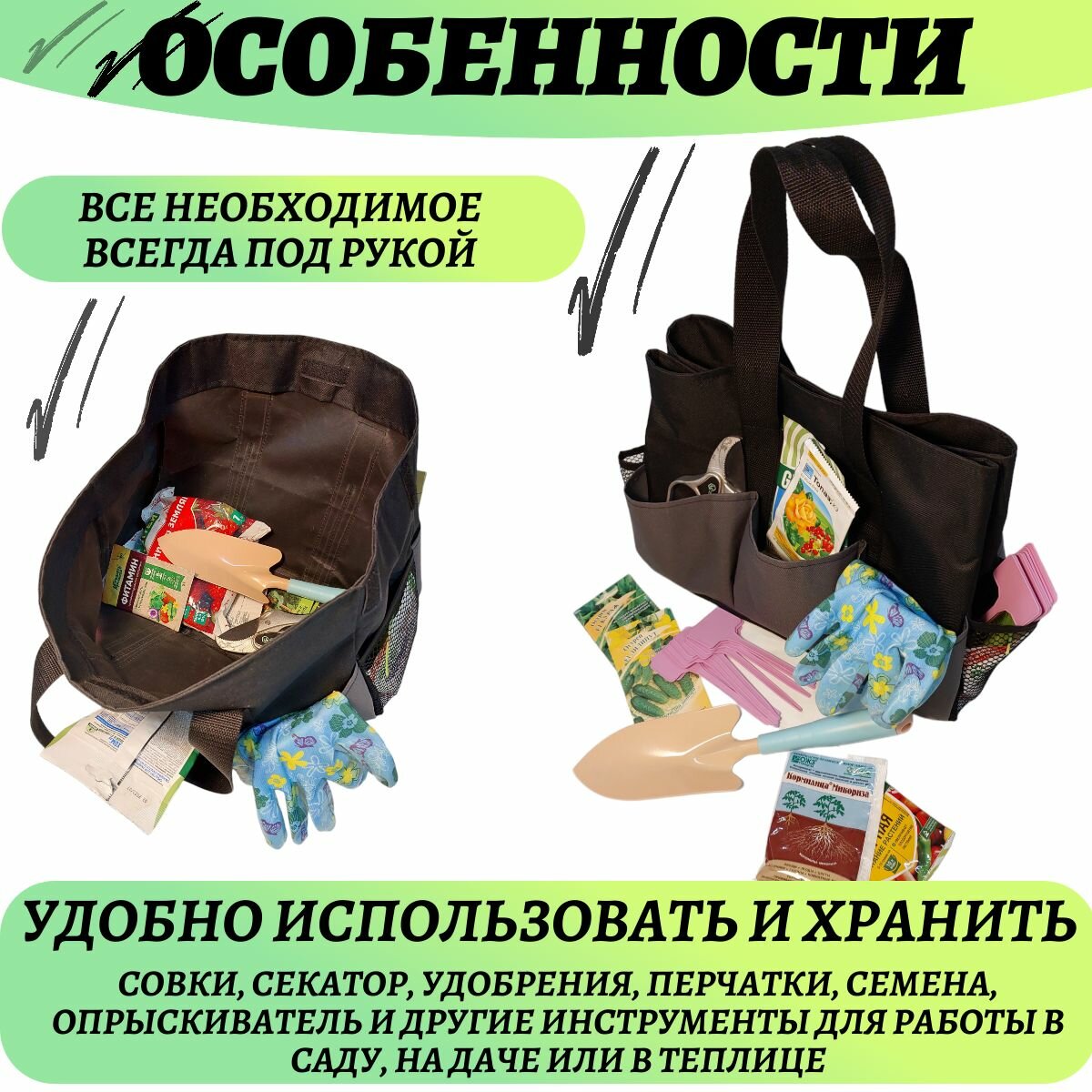 Сумка-органайзер для садовых инструментов (сумка садовода), серый интересное: