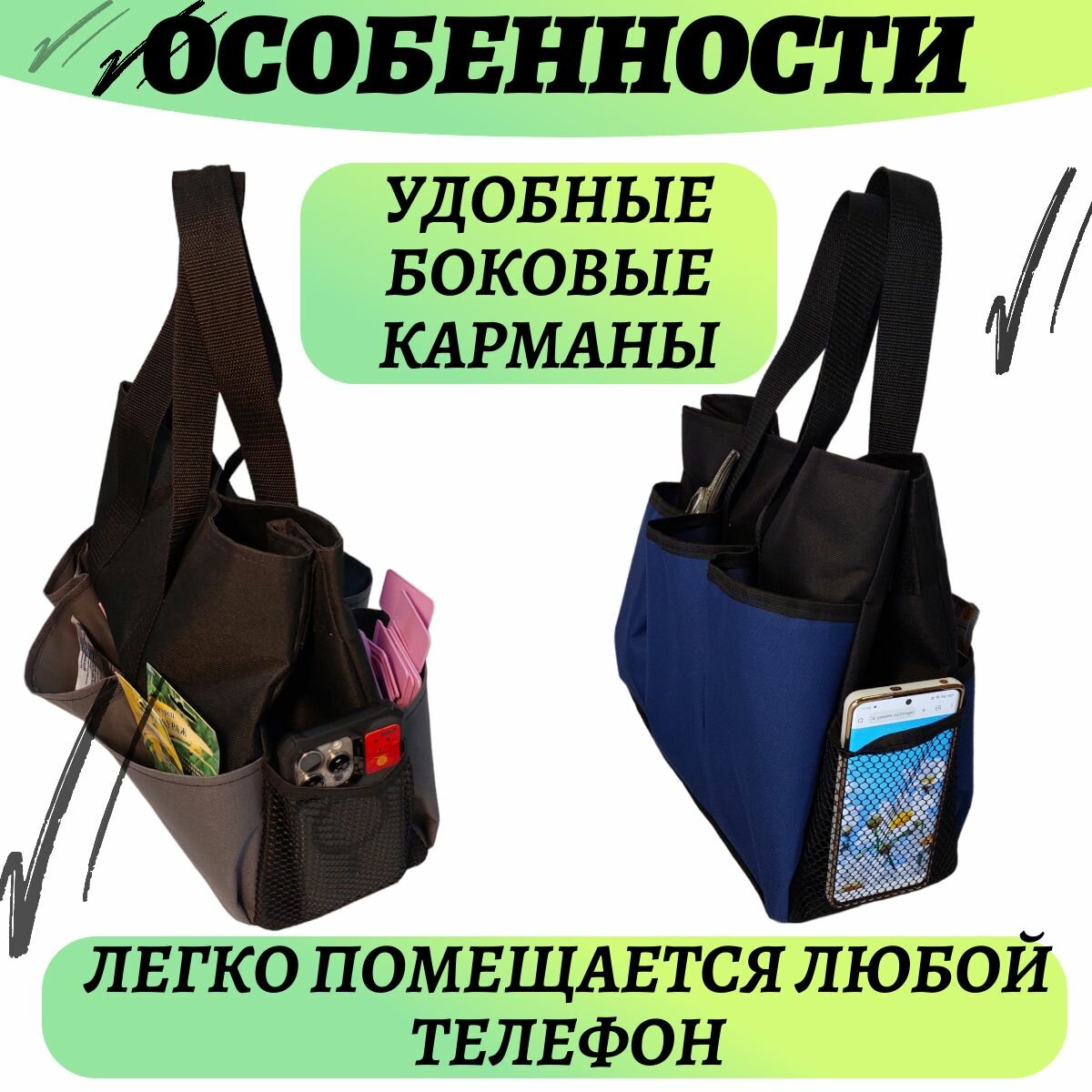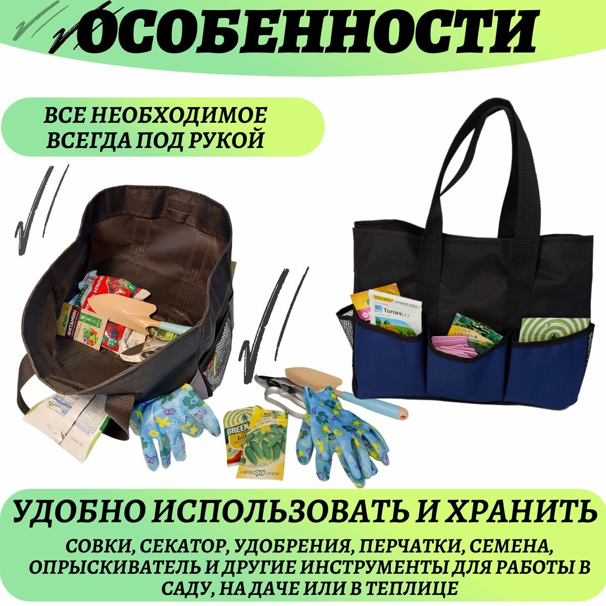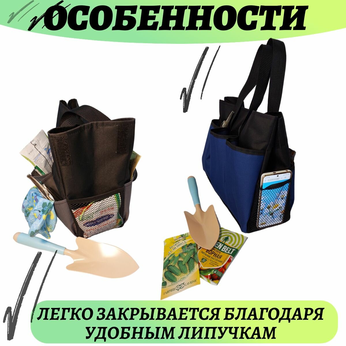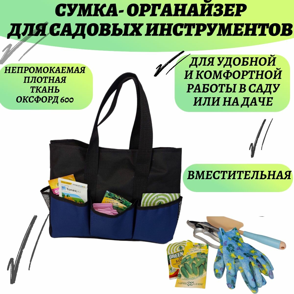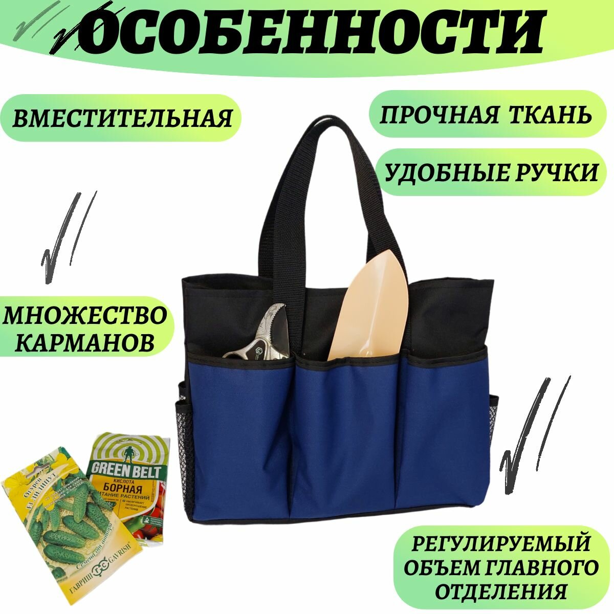 Сумка-органайзер для садовых инструментов (сумка садовода), синяя интересное: