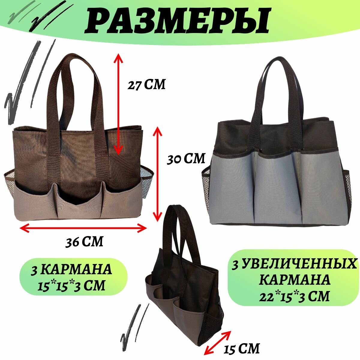 Сумка-органайзер для садовых инструментов (сумка садовода), зеленая
