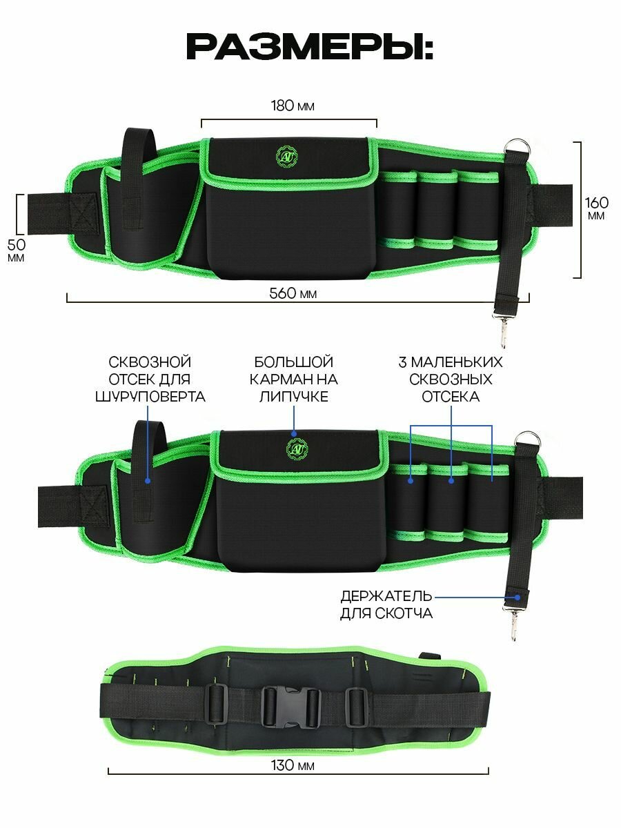 Сумка поясная для инструментов 560x160x50 мм, поясная сумка строительная 6 отделений интересное: