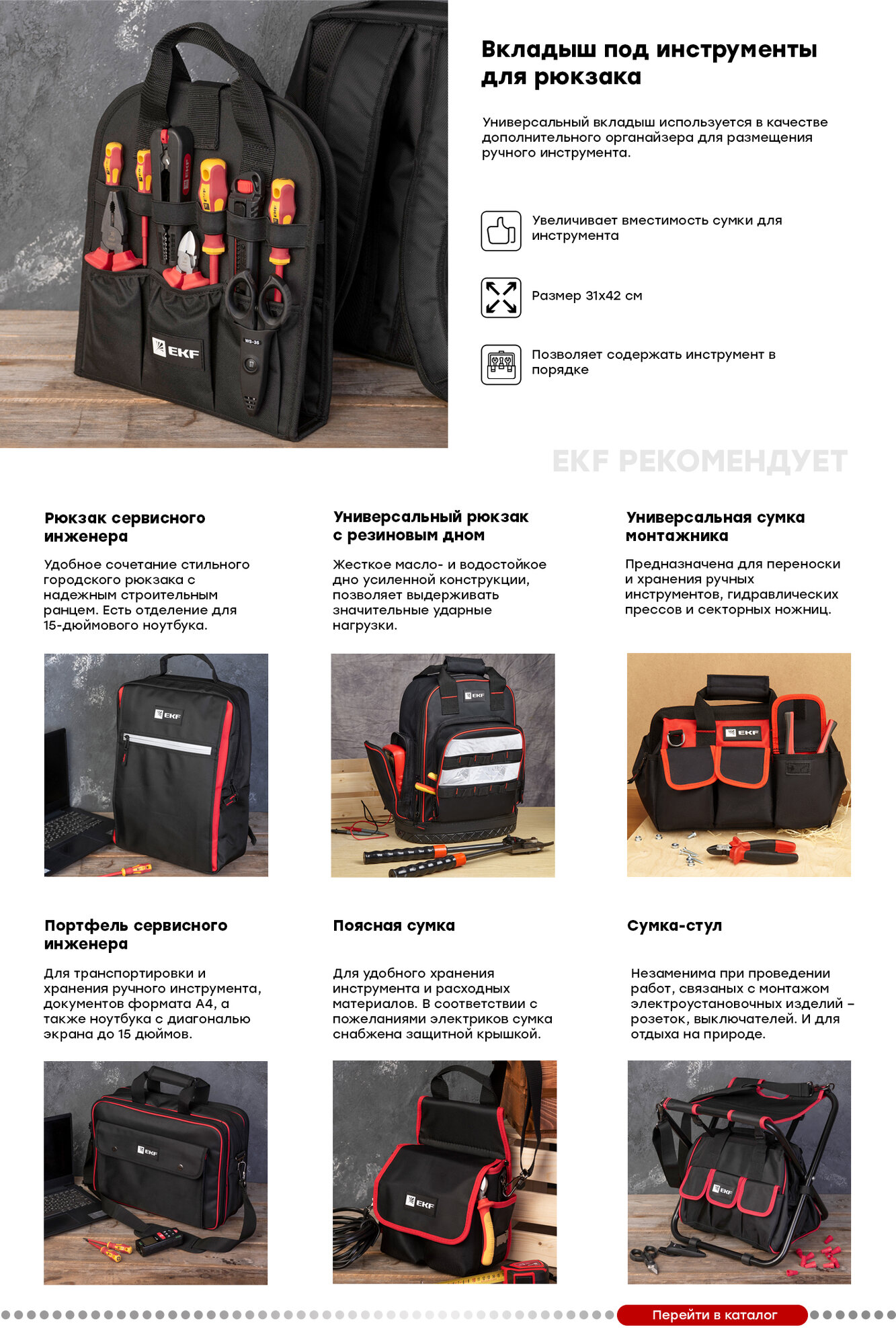 Вкладыш для сумки для инструментов универсальный С-10, EKF Professional интересное: