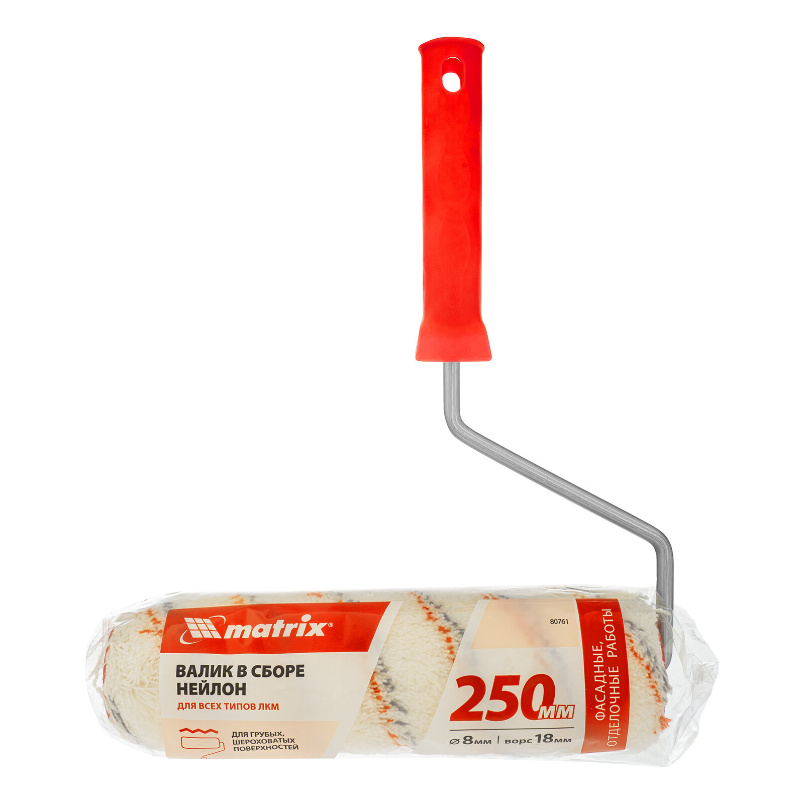 Купить Валик в сборе Matrix нейлон 250 мм, ворс 18 мм, D 48 мм, D ручки 8 мм 80761
