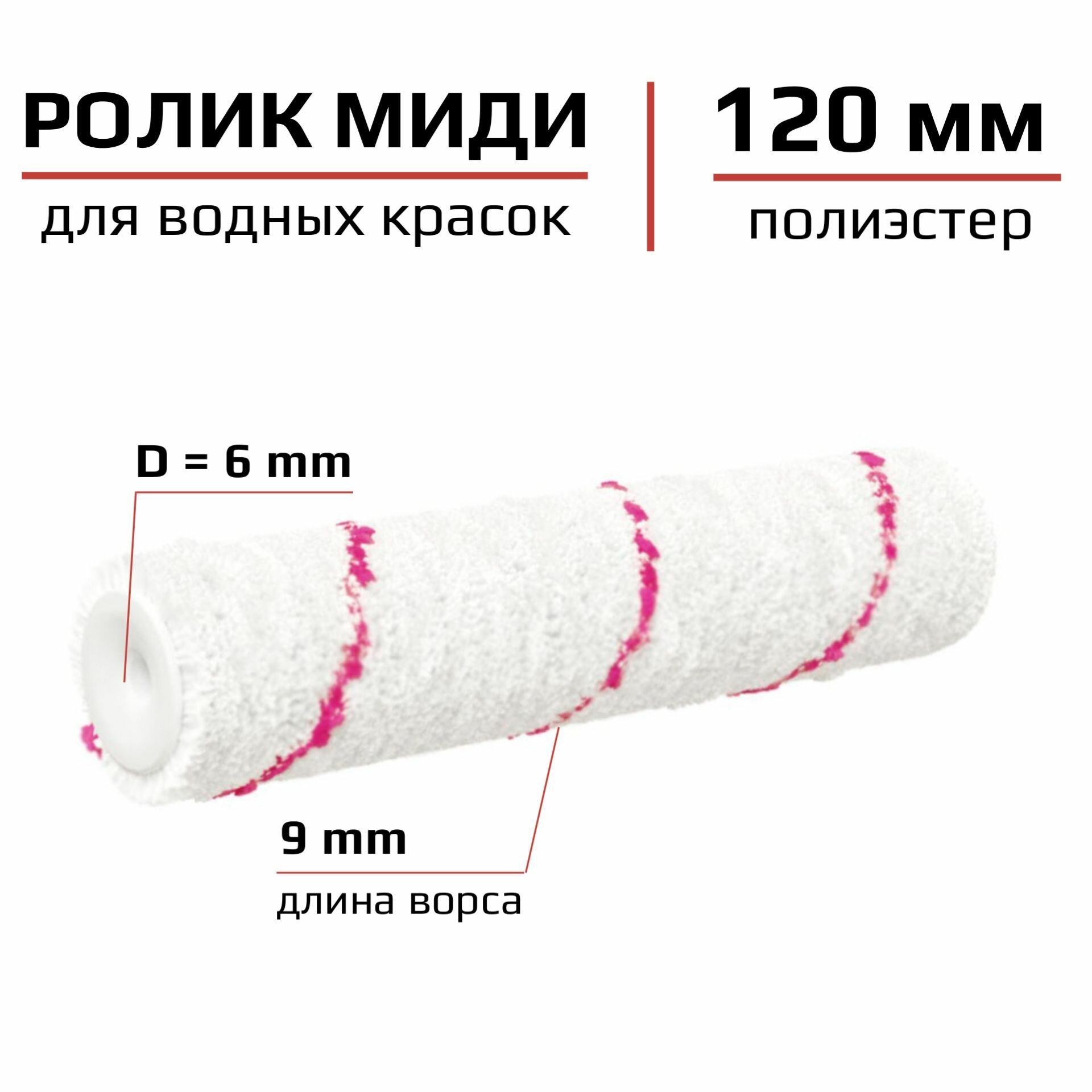 Купить Сменный ролик для миди валика 120мм Полиэстер Для водных красок