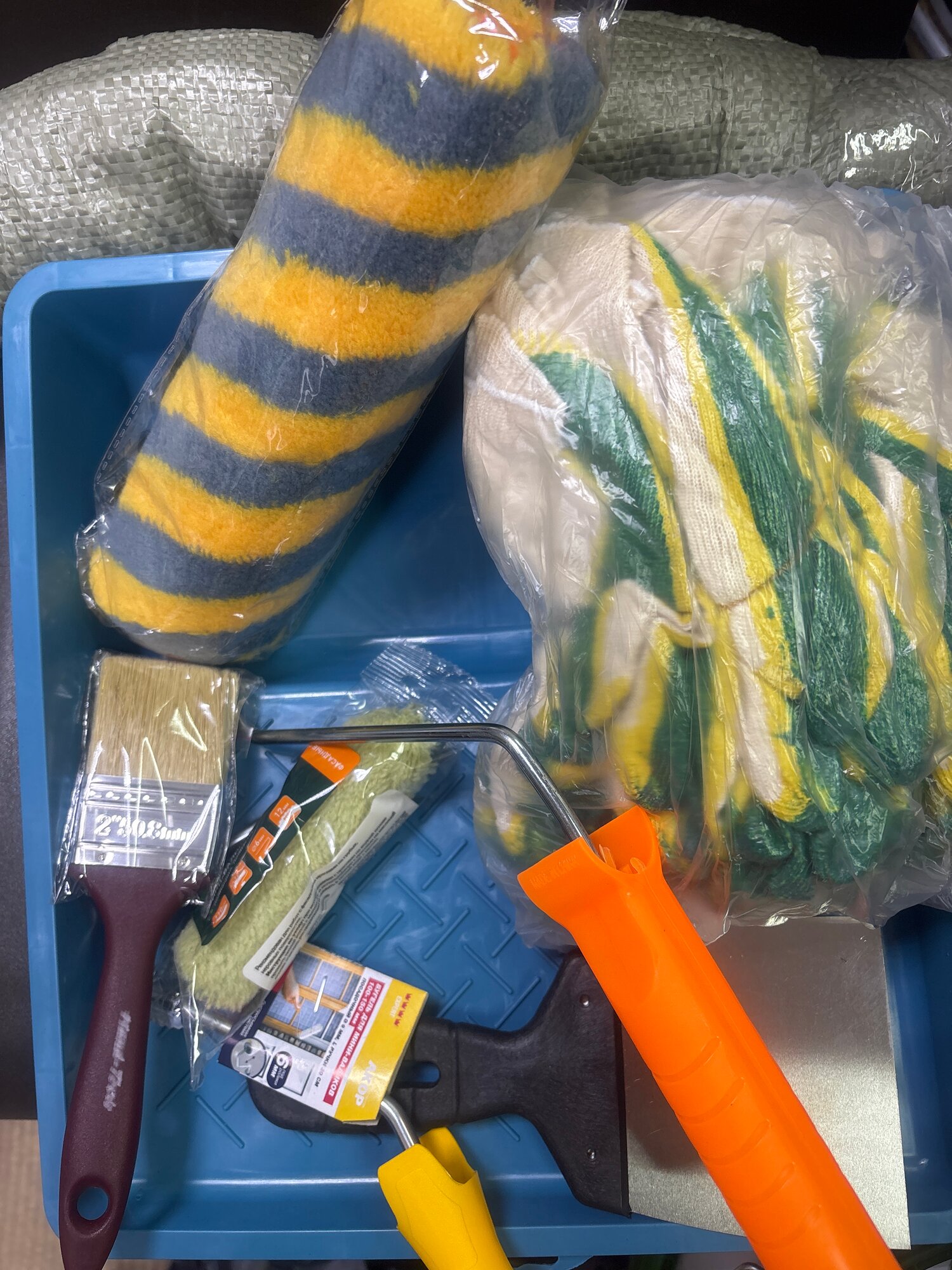 Валик 25см+валик 10 см+кисть 5см+ванночка большая+мешки 10шт+перчатки 10 шт+шпатель 10см интересное: