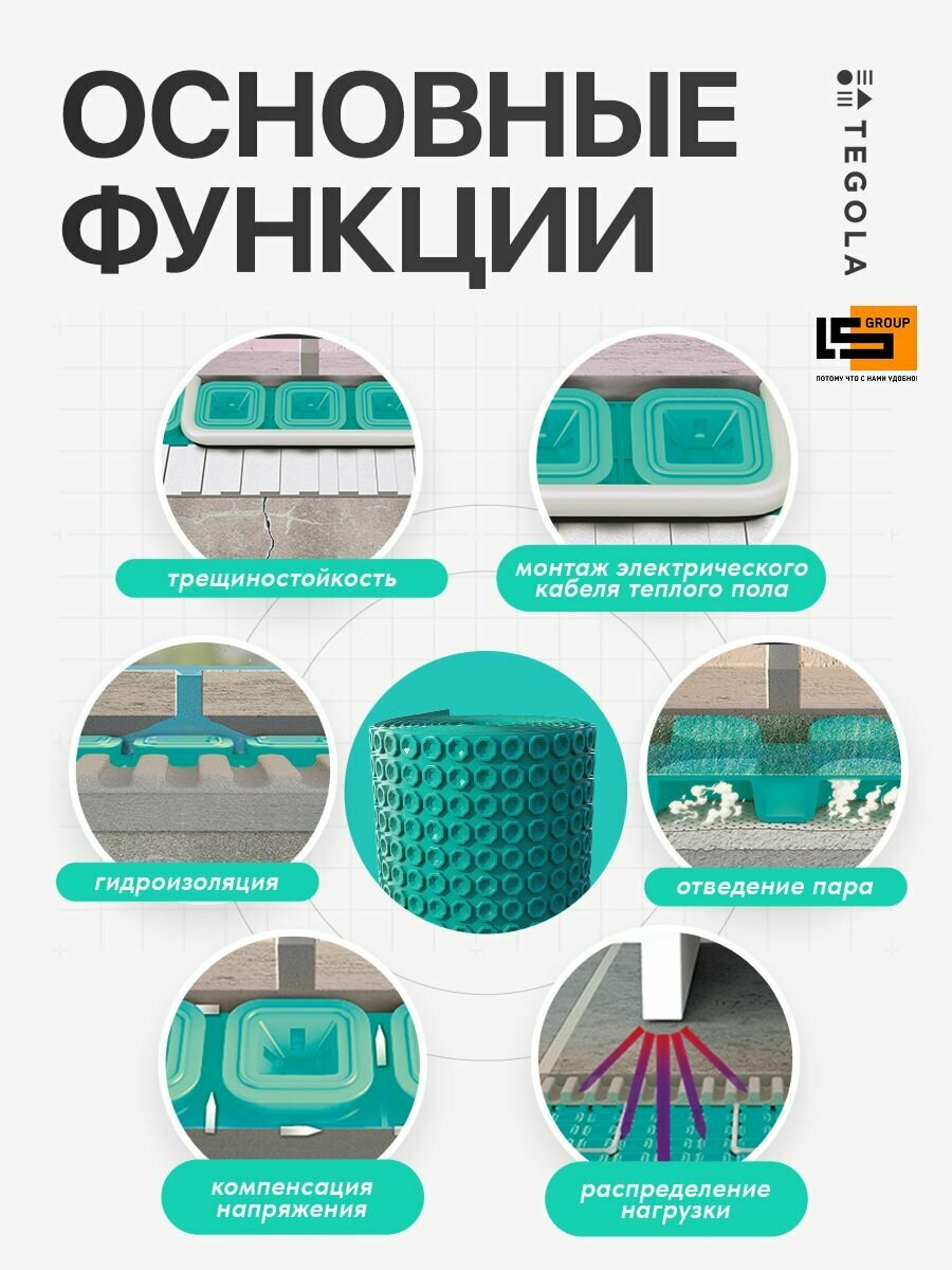 Разделительная трещиностойкая мембрана под теплый пол TEGOLA "NO CRACK HEAT", (1м/п) интересное: