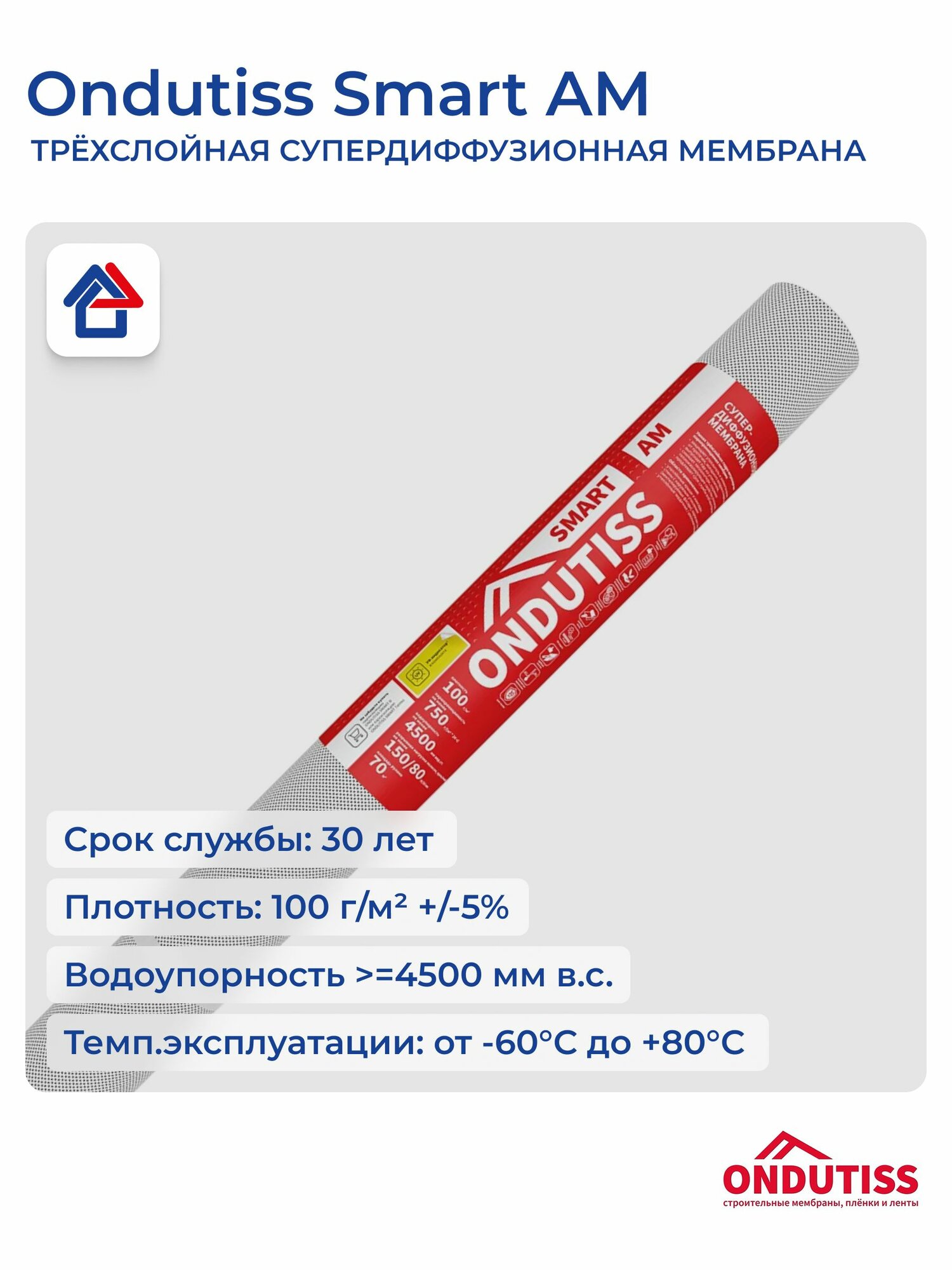 Ондутис Смарт АМ 70м2 диффузионная мембрана Ondutiss Smart AM интересное: