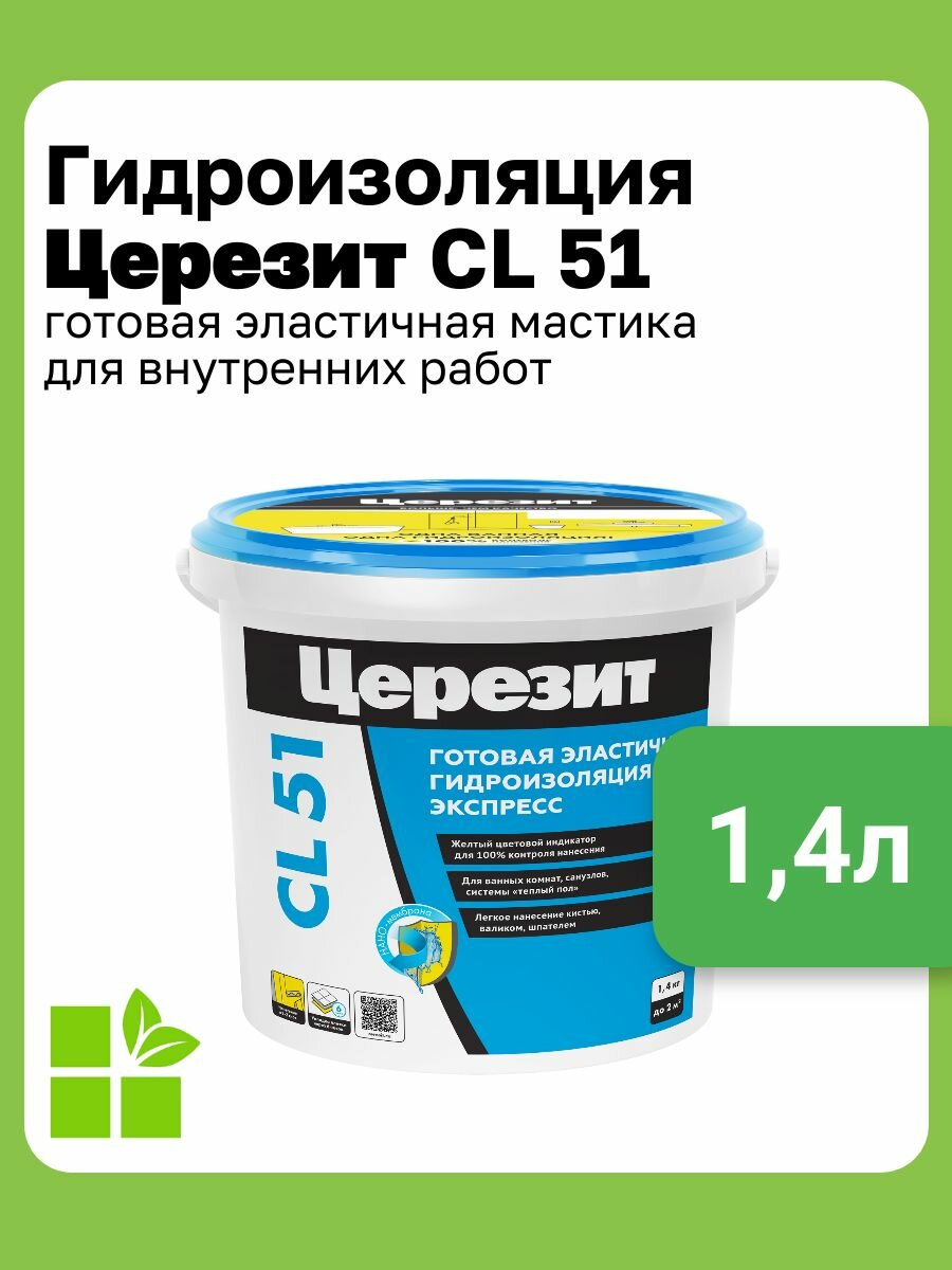 Гидроизоляция эластичная полимерная Церезит CL51, фасовка 1,4 л интересное: