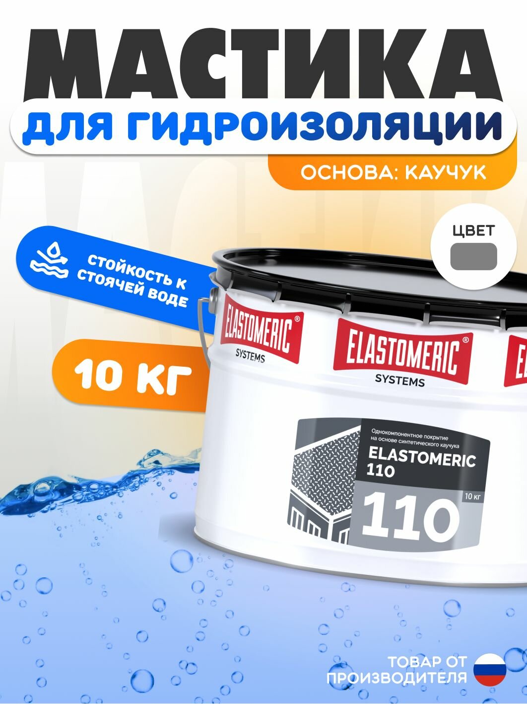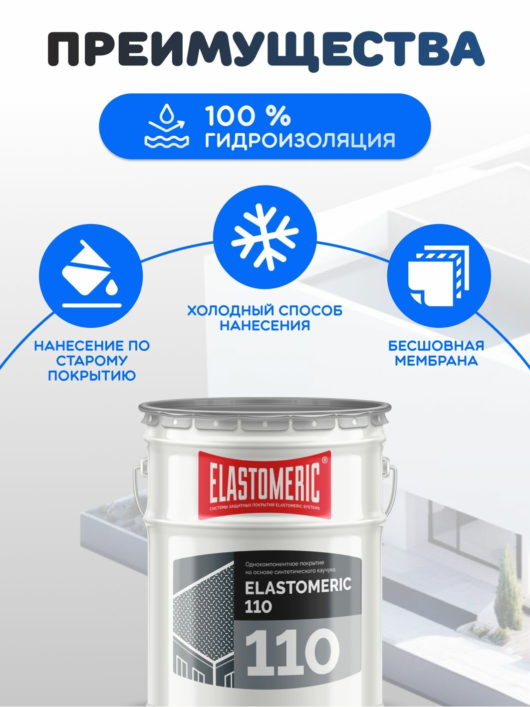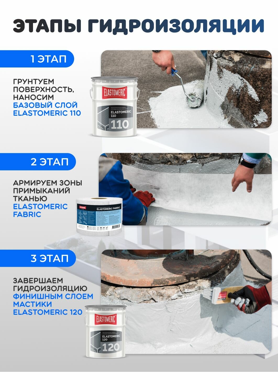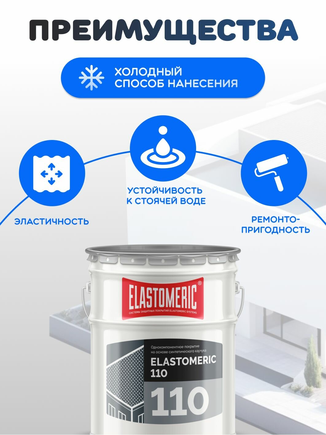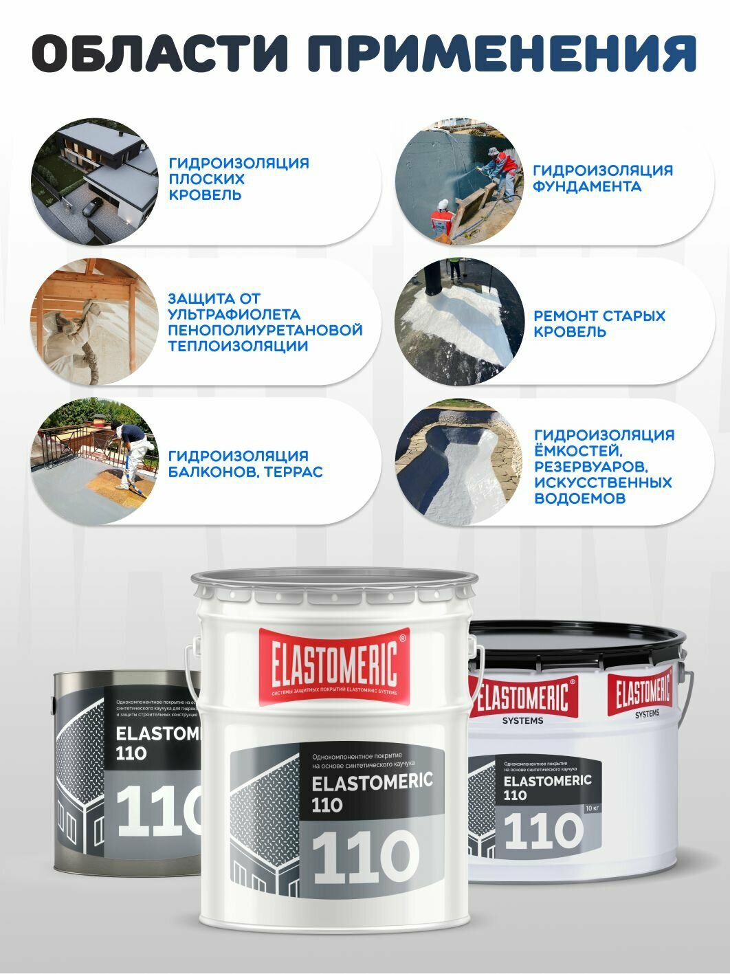 Гидроизоляция для бетона, фундамента и плоской кровли ELASTOMERIC 110 мастика гидроизоляционная однокомпонентная - жидкая резина для кровли базовый слой