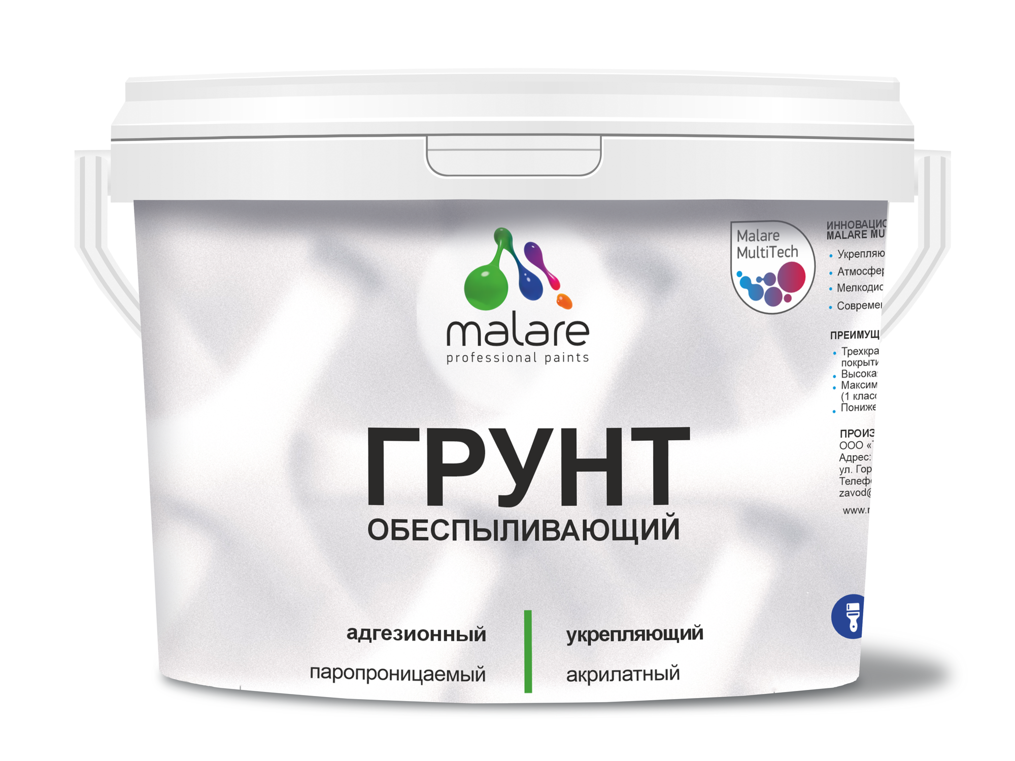 Грунт обеспыливающий Malare акриловый адгезионный универсальная, без запаха быстросохнущий, белый, 10 кг.