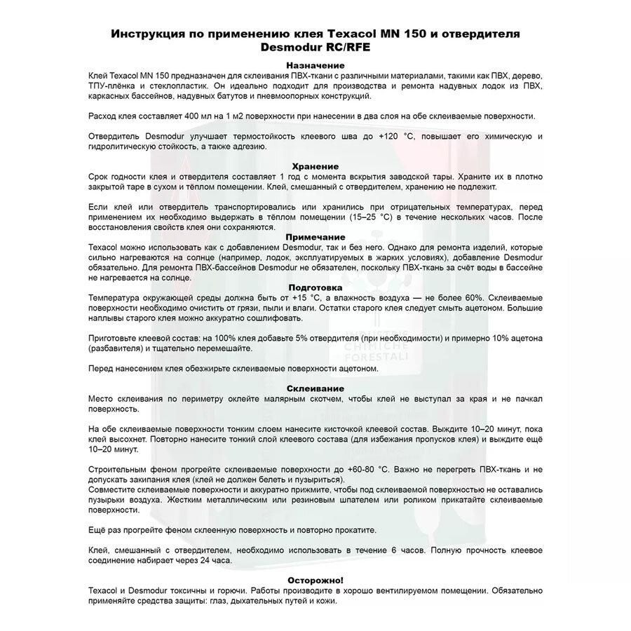 Клей для лодок ПВХ Texacol 100 мл с отвердителем 5 мл. интересное: