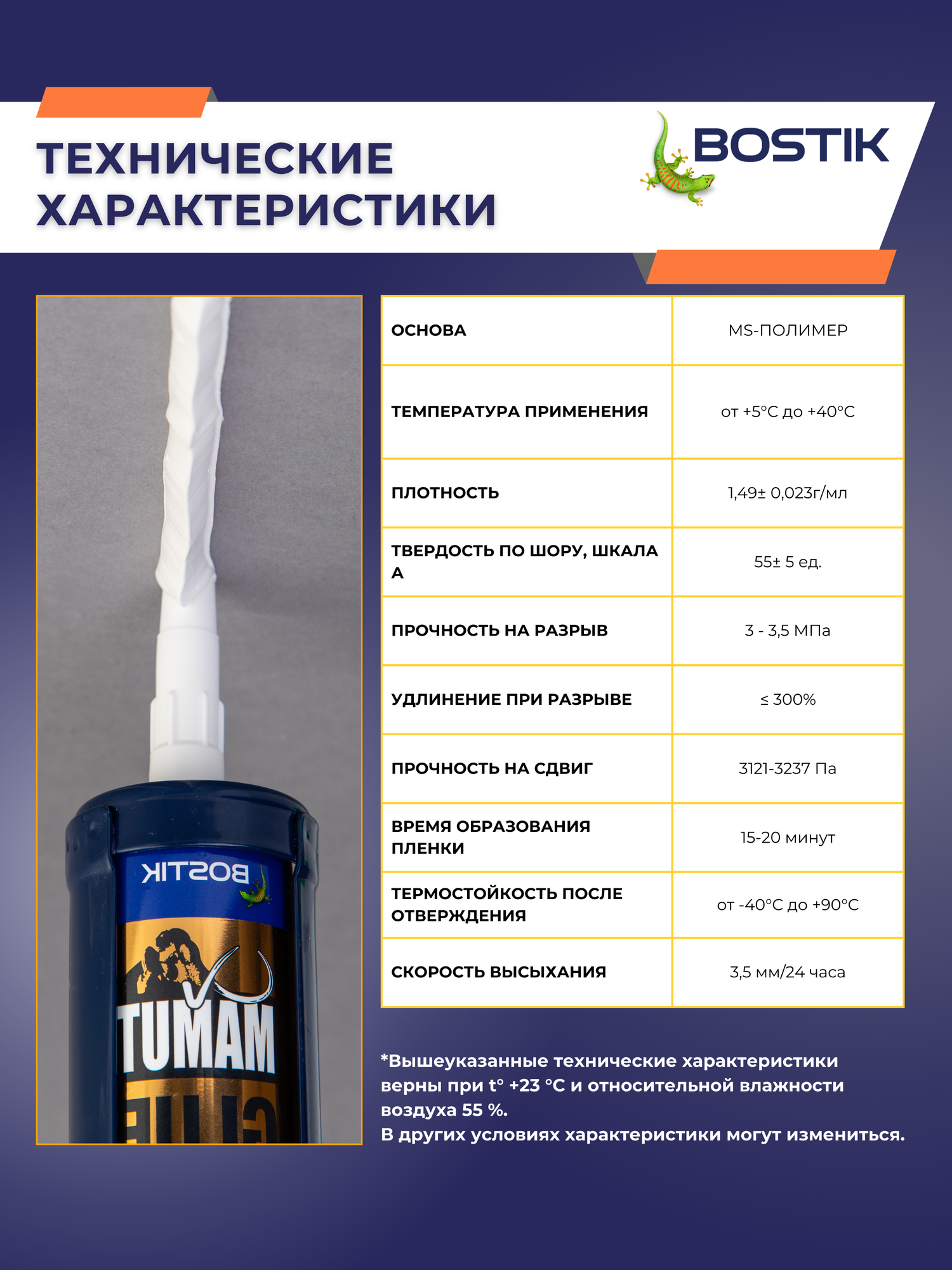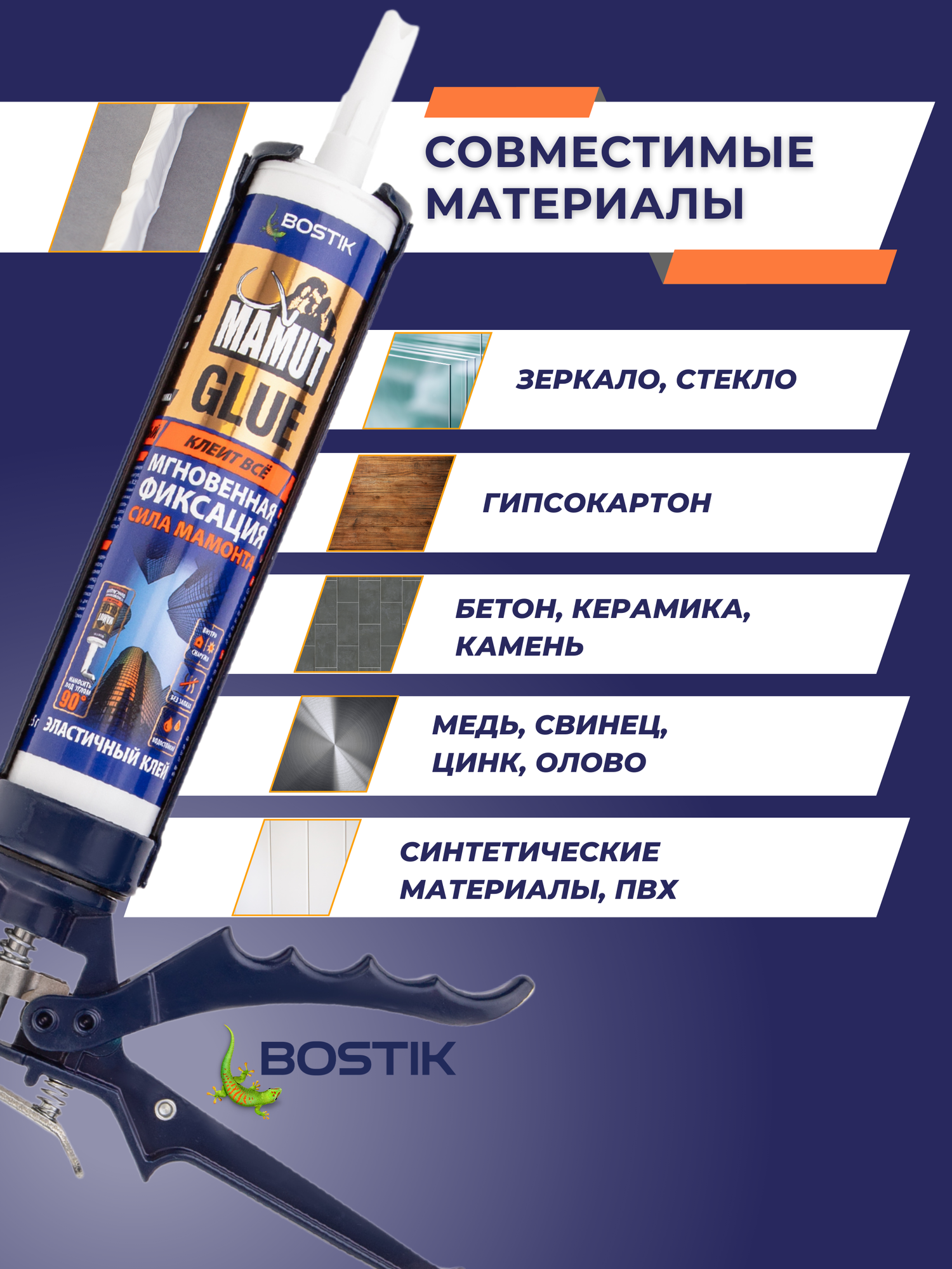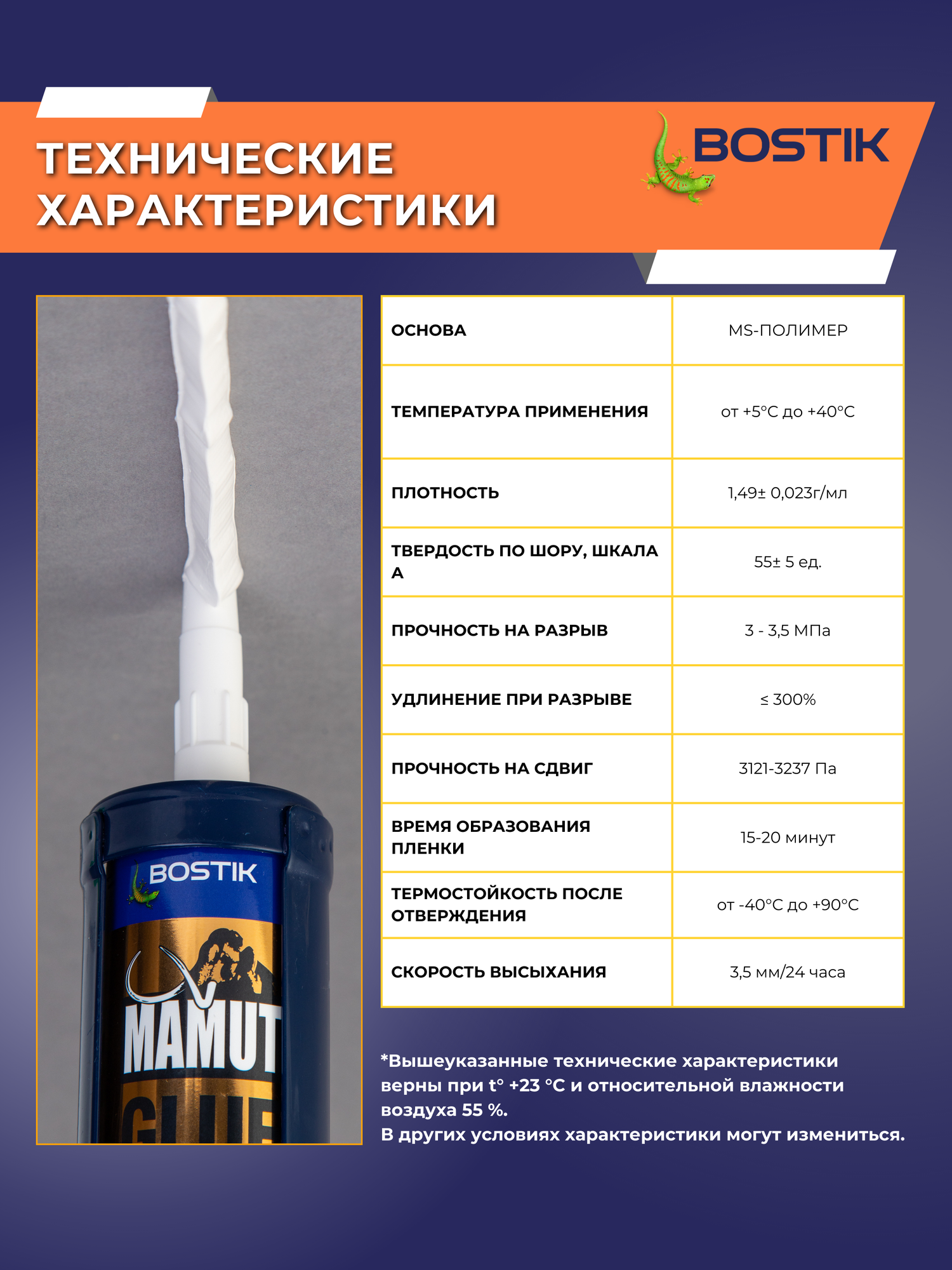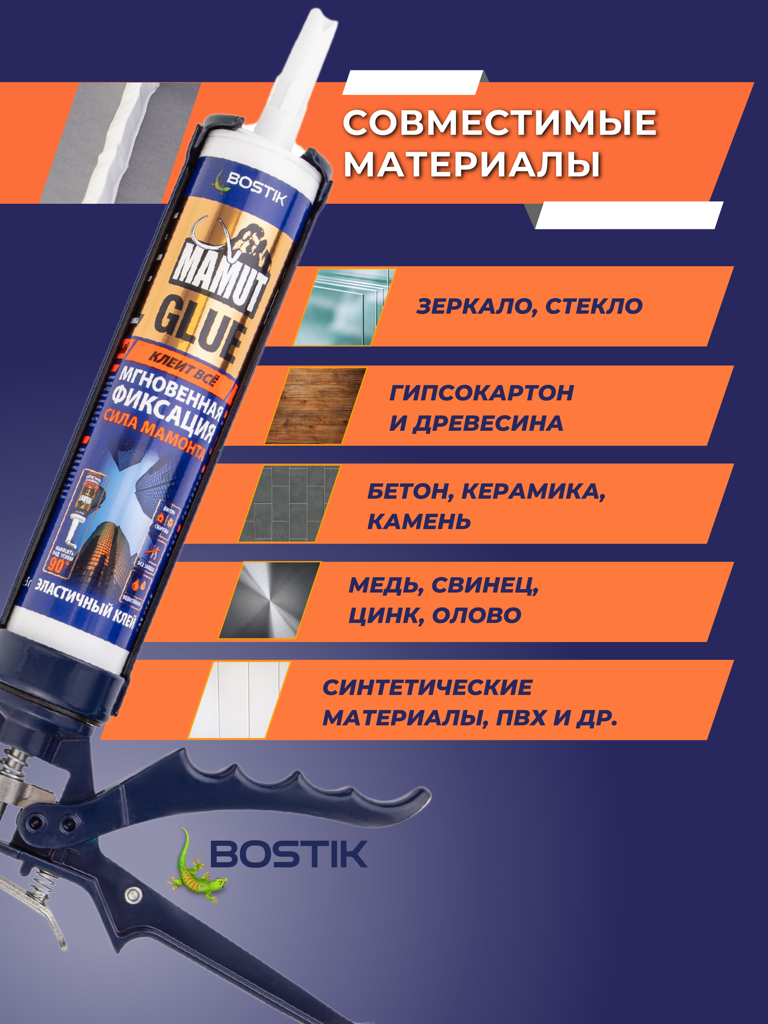 Супер-мощный гибридный монтажный клей Bositk Mamut Glue 290 мл, артикул 638300. интересное: