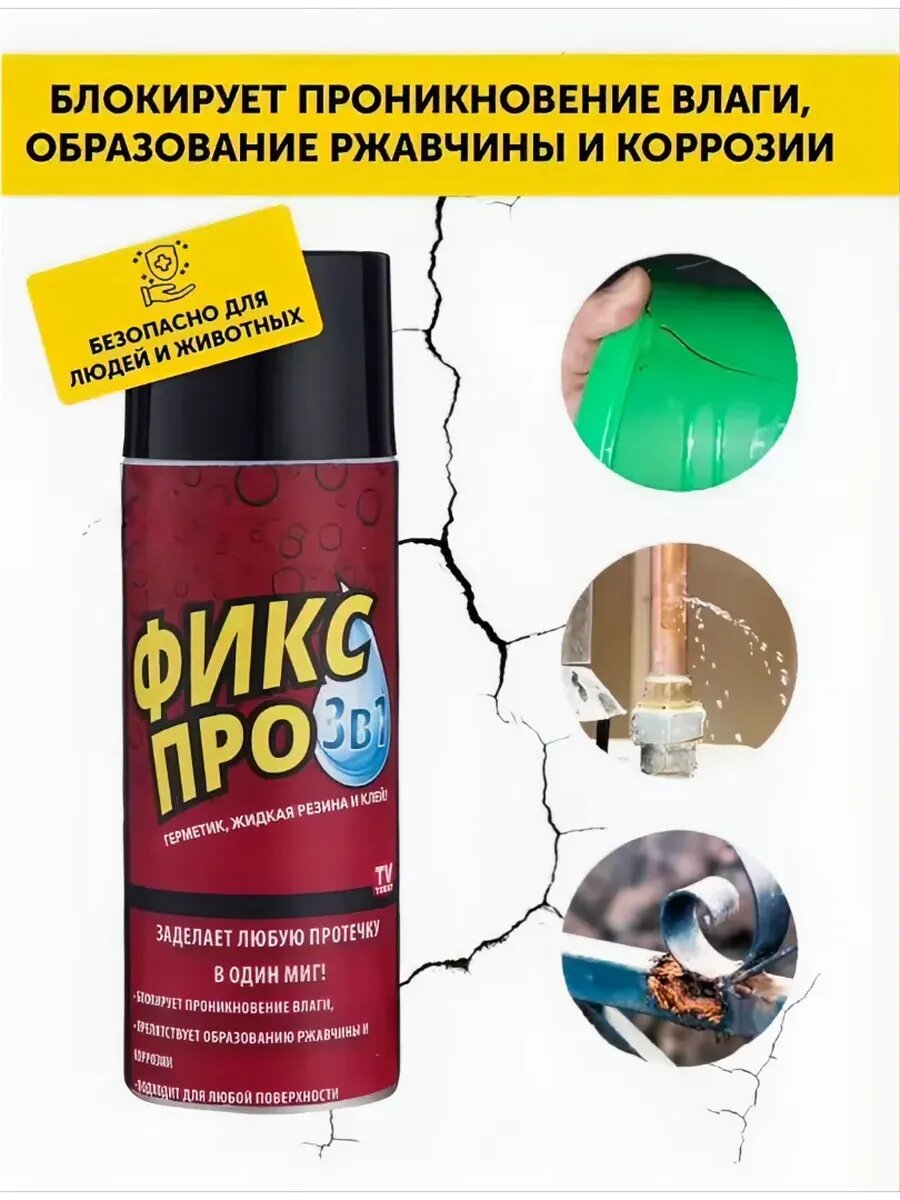 Жидкая резина Фикс Про, 3 в 1, прозрачный, аэрозольный, водостойкий
