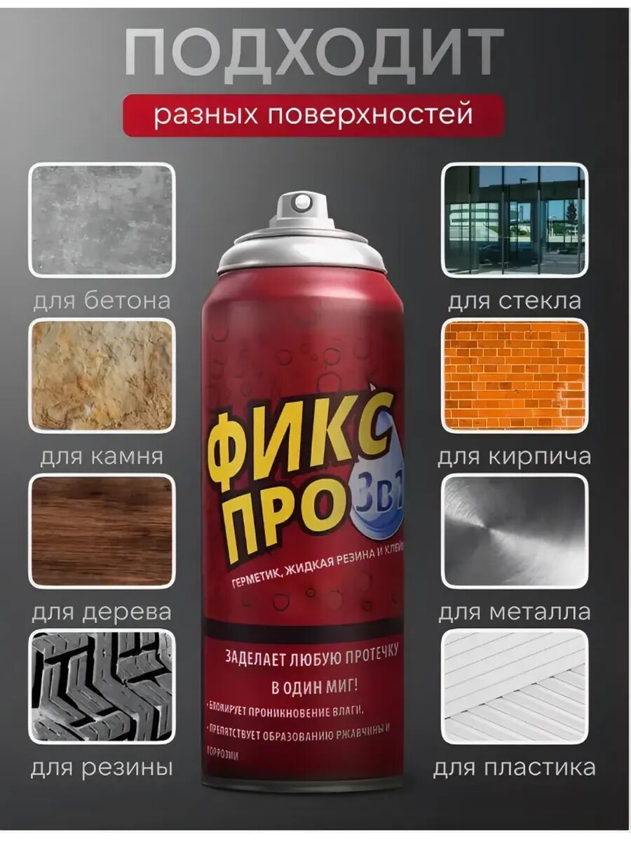 Жидкая резина Фикс Про, 3 в 1, прозрачный, аэрозольный, водостойкий