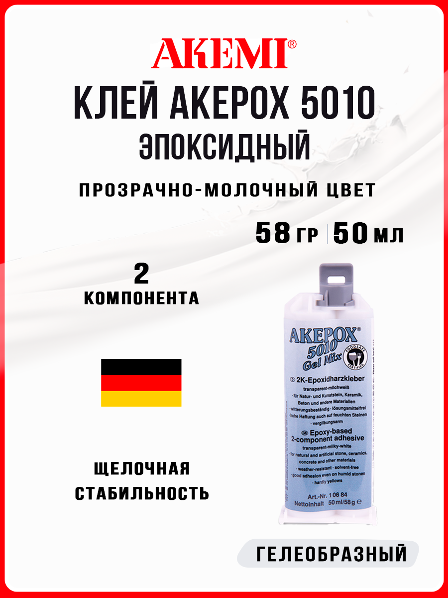 Akemi(Акеми) клей эпоксидный AKEPOX (Акепокс) 5010, Gel Mix, гелеобразный, прозрачно-молочный, 50мл. интересное: