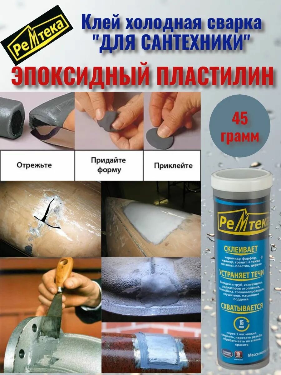 Клей холодная сварка для сантехники (45 г), эпоксидный пластилин - мгновенно устраняет течи без демонтажа! интересное:
