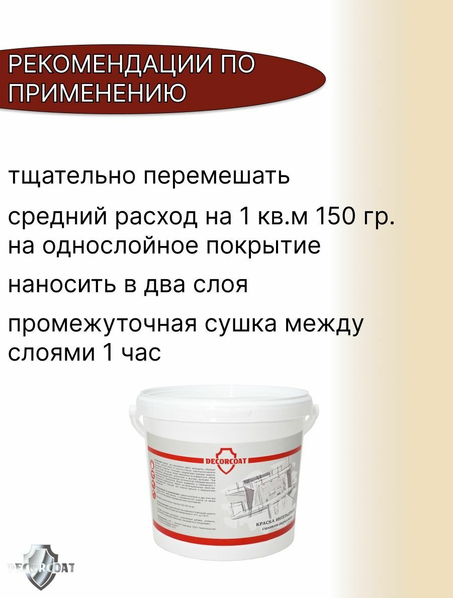 Краска Интерьерная Силикон-Акриловая DECORCOAT/ капучино/ 1.2кг/ Onyx 100