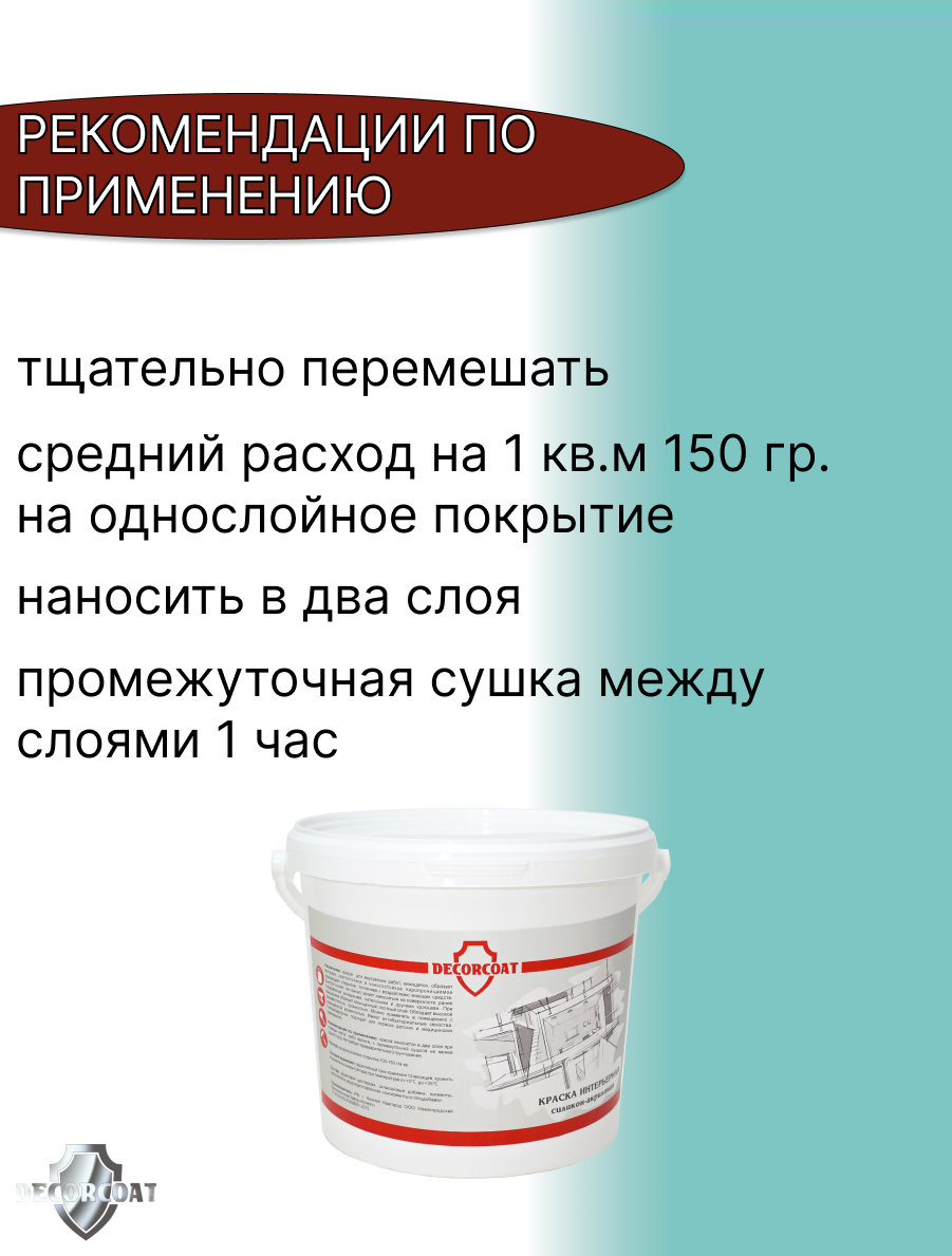 Краска Интерьерная Силикон-Акриловая DECORCOAT/ бирюзовый/ 3кг/ Верона 145