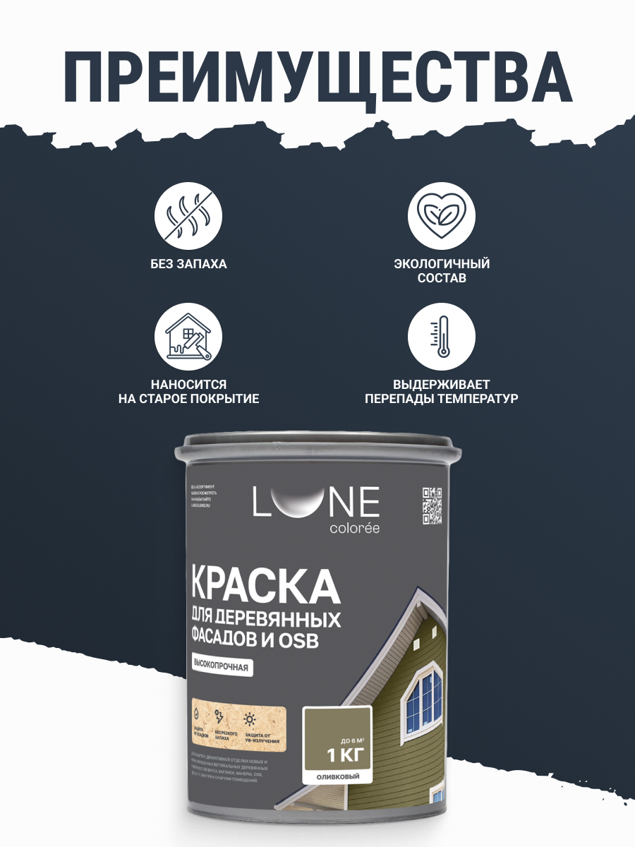 Купить Краска для деревянных фасадов и OSB LUNE COLOREE цвет Оливковый 1кг (по 6шт)