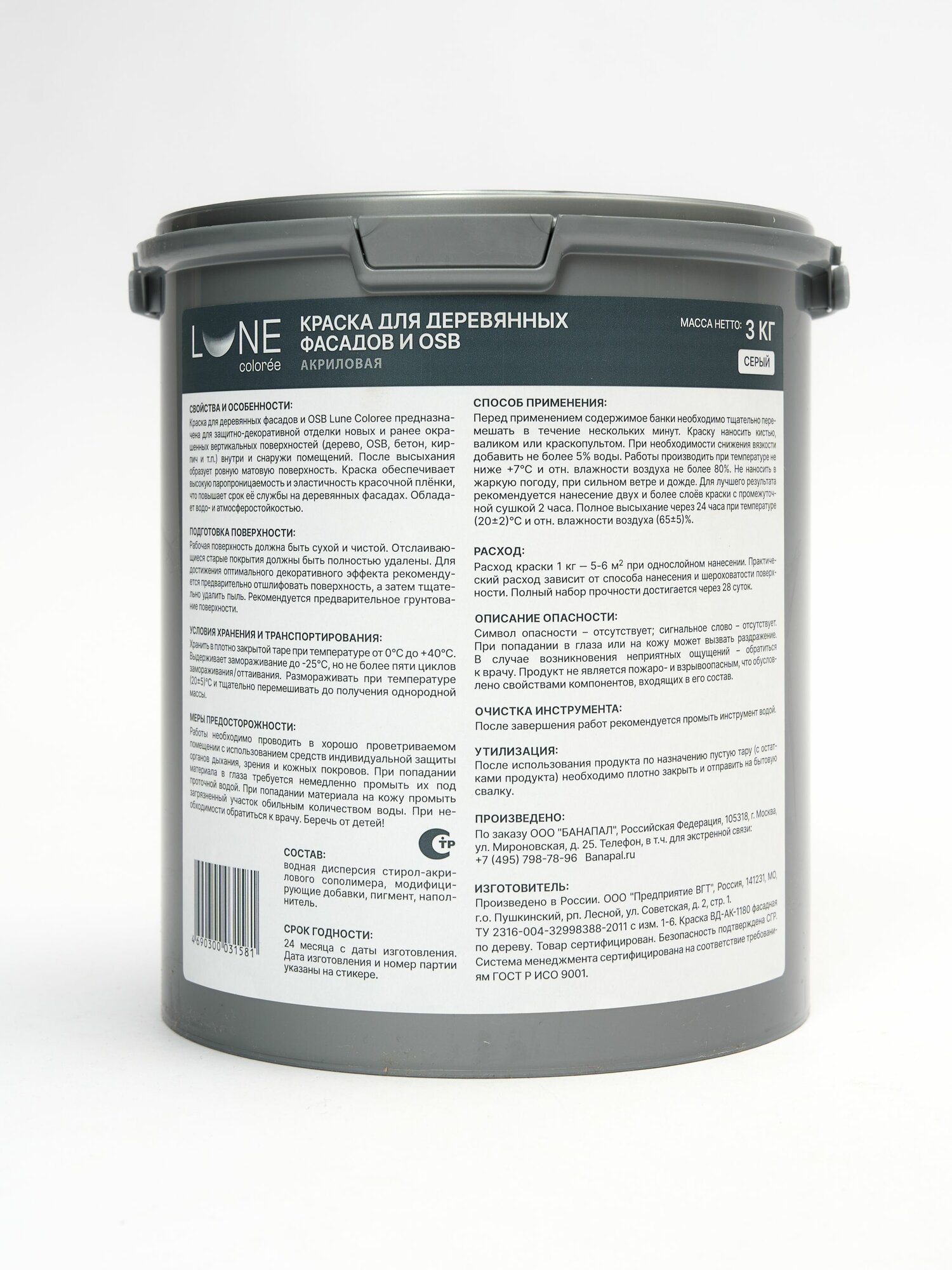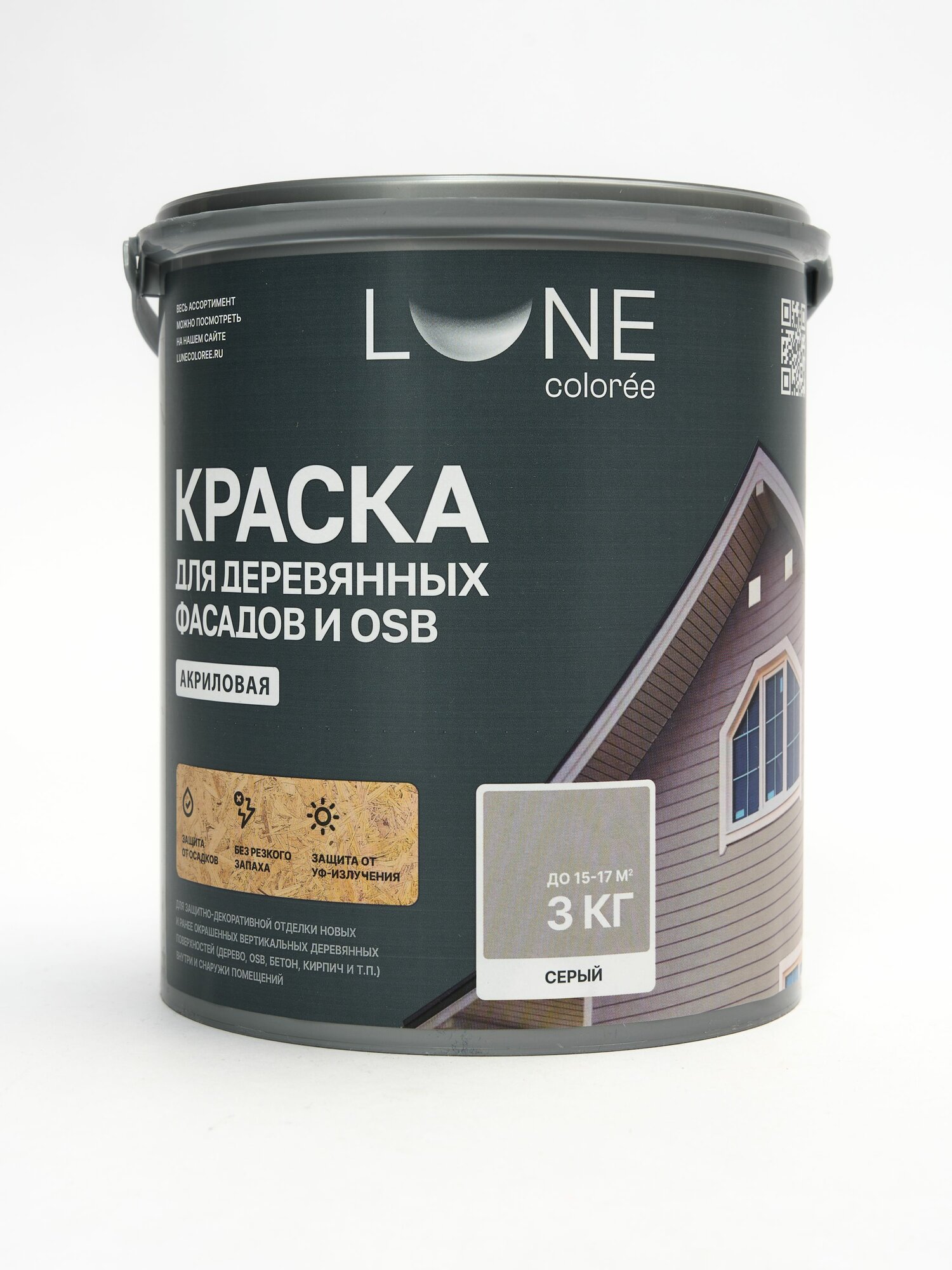 Купить Краска для деревянных фасадов и OSB плит LUNE COLOREE цвет Серый 3кг