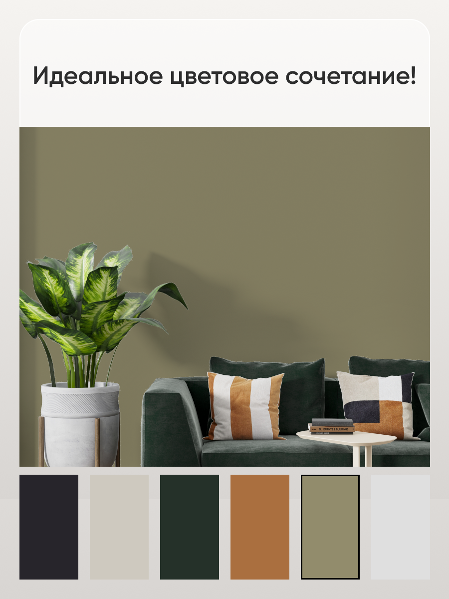 СохранитьКраска Aturi Design Velvet интерьерная, для стен, моющаяся, цветная; Цвет: Тропический хаки, 1,4 кг интересное: