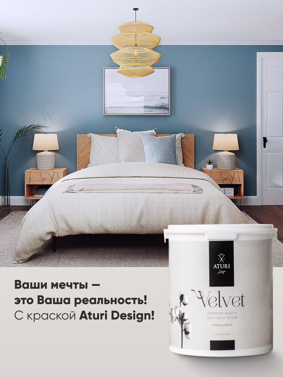 Краска интерьерная для стен и обоев Aturi Design Velvet 1,4 кг цвет: Белоснежный. Меловая, матовая, белая, без запаха