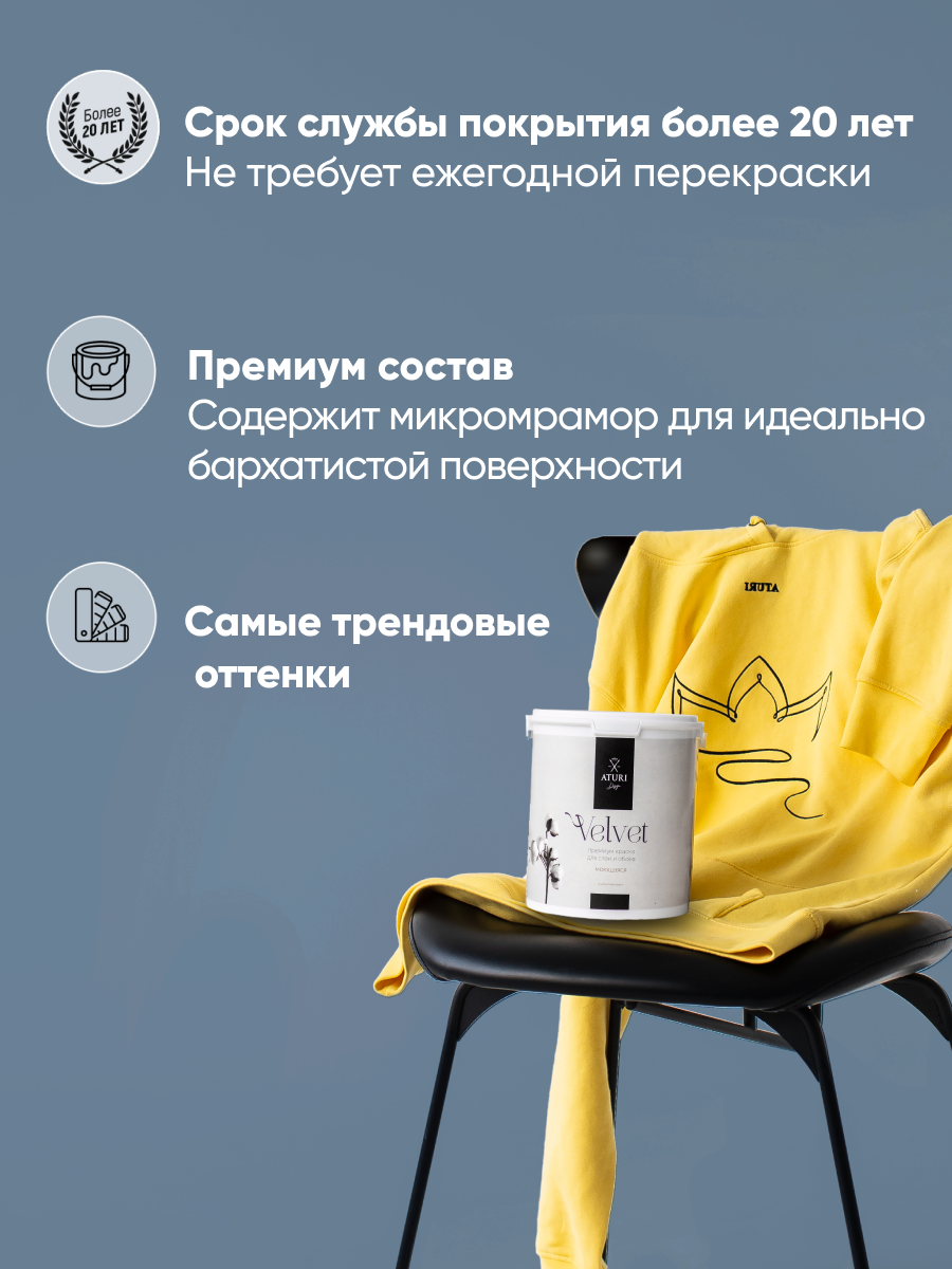 Краска Aturi Design Velvet 1,4 кг, цвет: Графит, интерьерная, без запаха, моющаяся, матовая